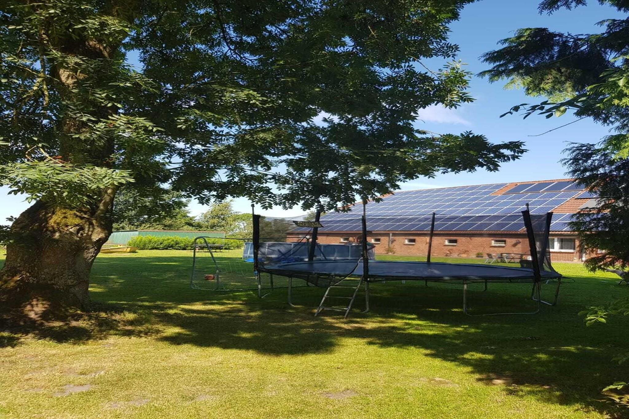 På 1. etage: (åbent køkken(spisebord, kogeplade(Komfur med fire kogeplader, glaskeramisk), brødrister, kaffemaskine, ovn, mikrobølgeovn, opvaskemaskine , køle-fryseskab), stue / spisestue(Fjernsyn(parabol), radio, CD-afspiller), soveværelse(dobbeltseng(180 x 200 cm)), soveværelse(2x enkeltseng(90 x 180 cm)), badeværelse(badekar, bruser, toilet)) vaskemaskine(deles med andre gæster, betalt), varme, cykelopbevaring, havemøbler, grill, parkering, trampolin, Parasol, barnestol