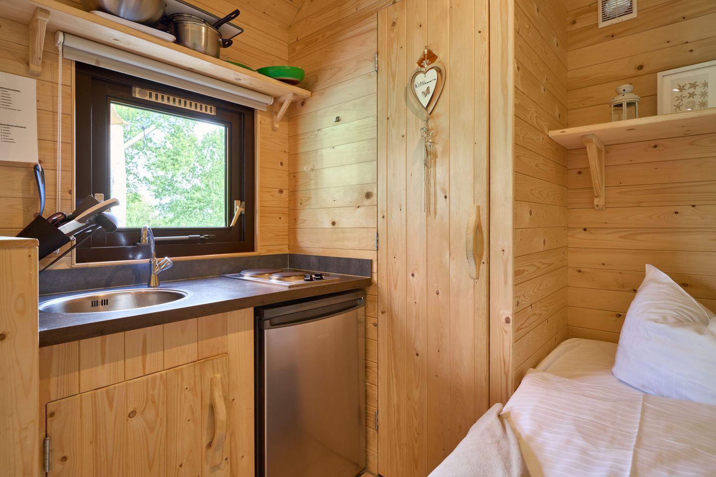 Küchenzeile inklusive 2 Kochplatten und Kühlschrank, perfekt für die Selbstversorgung