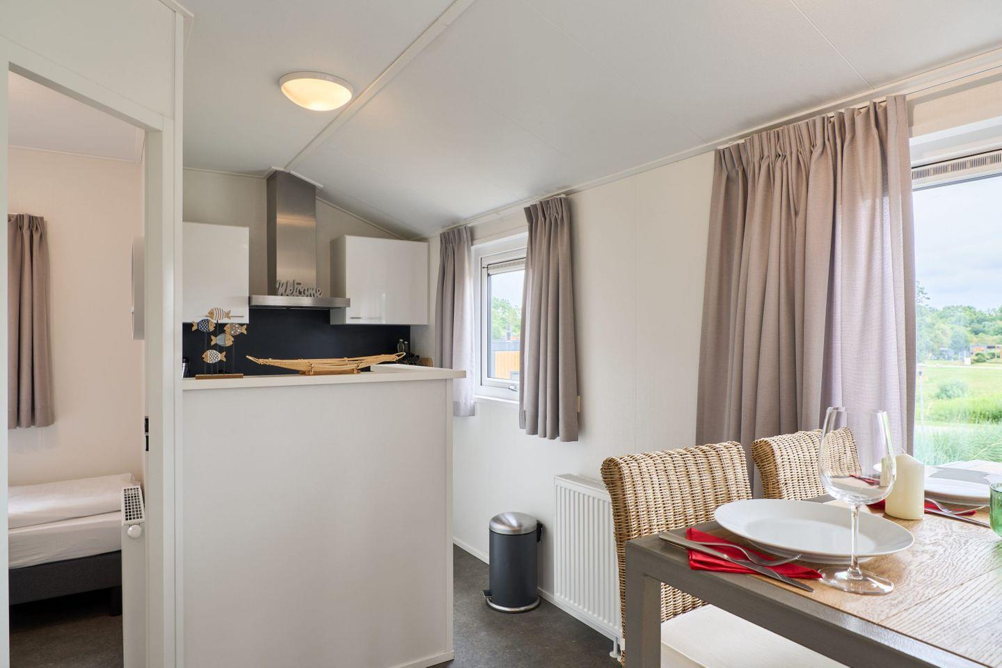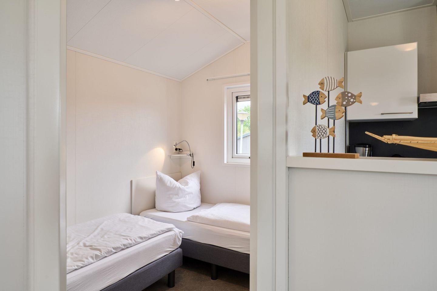 Der Wohnraum ist mit einem gemütlichen Sofa und einem TV ausgestattet und schafft eine angenehme Atmosphäre, in der Sie entspannen können. Internet und WLAN stehen kostenlos zur Verfügung, sodass Sie auch während Ihres Aufenthalts bestens vernetzt bleiben. Der Schlafbereich und der gesamte Wohnraum verfügen über Sichtschutz an allen Fenstern und bieten Privatsphäre und einen erholsamen Rückzugsort.