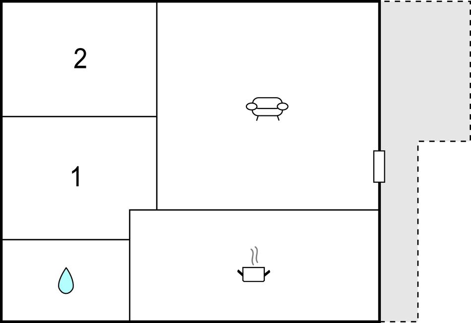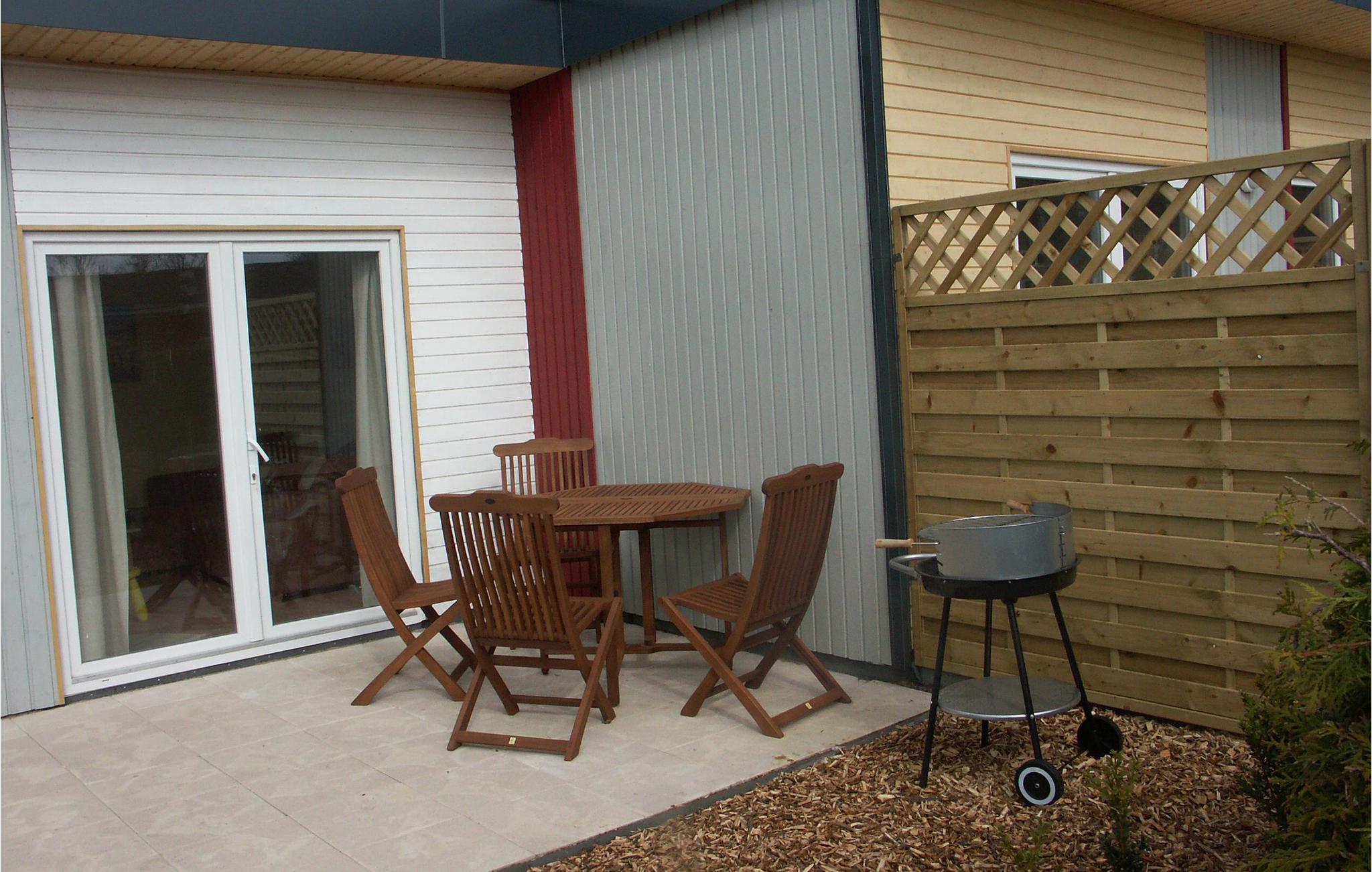 Foran huset kan I sætter jer godt til rette i havemøblerne, mens I bag huset finder en græsplæne og legeplads. Huset har en hyggelig stue med integreret køkken, opvaskemaskine, mikroovn samt soveværelse med dobbeltseng (180x190) og soveværelse med køjeseng (90x200). Denne bolig er ideel til små familier eller par. Fra huset kan I endda høre lyden af ??bølger, for Østersøen og dens smukke, naturlige strande ligger kun få meter væk.