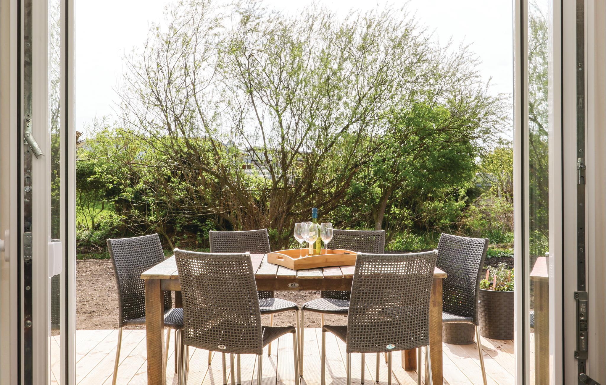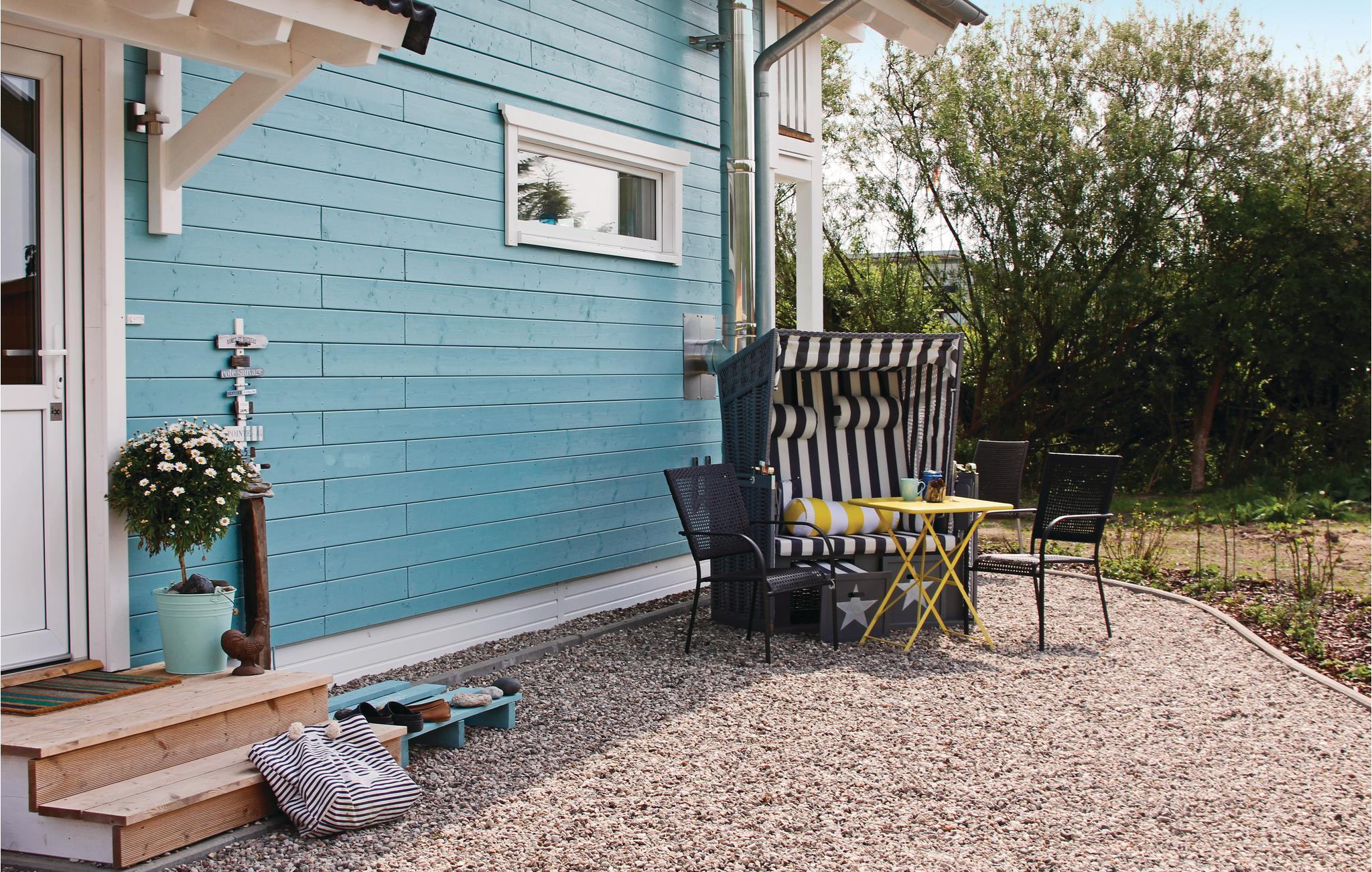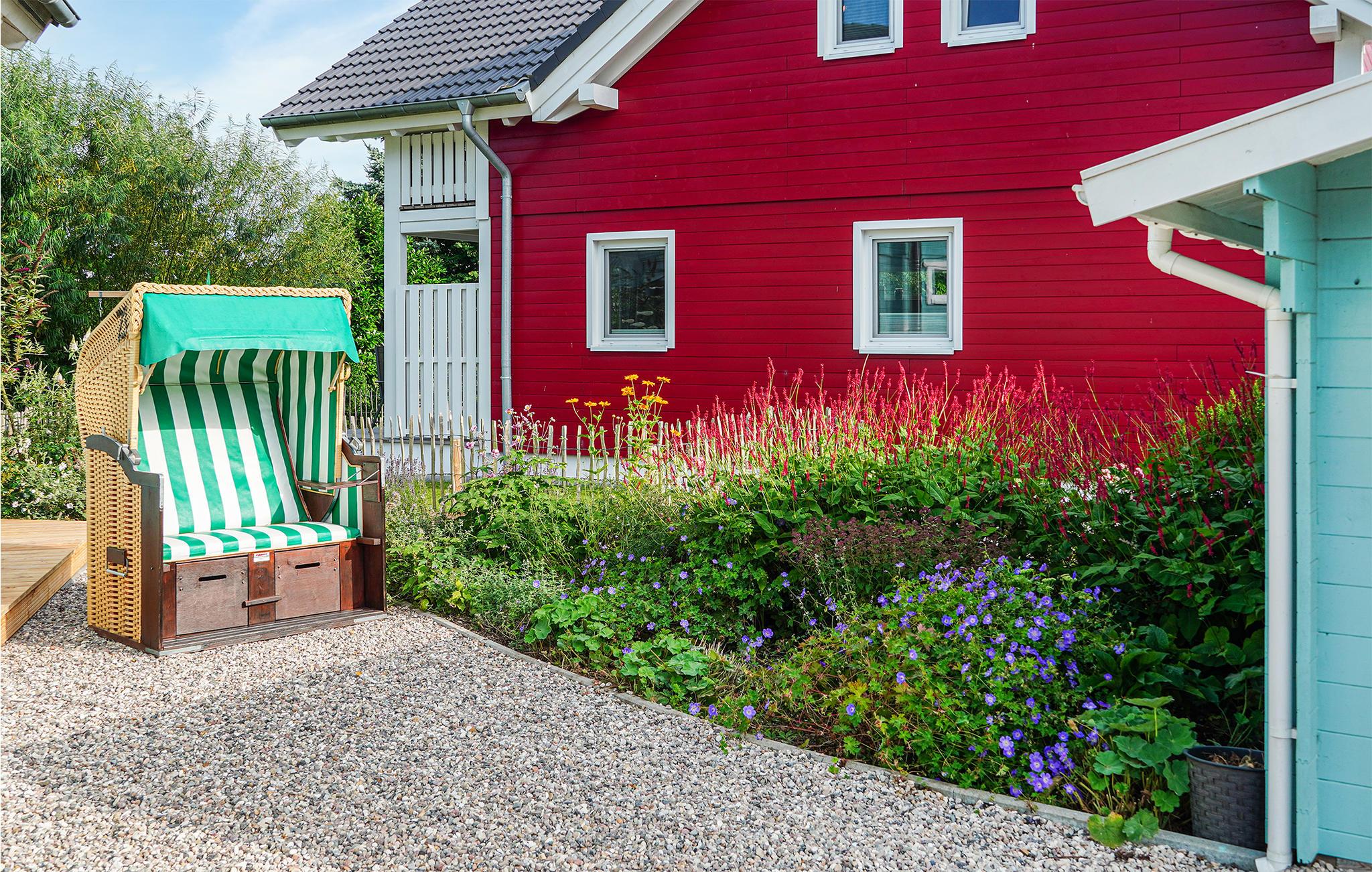 På terrassen samt altanen på første sal og naturligvis også i haven kan I altid finde en skyggefuld plads til at slappe af. Der er få skridt til Østersøens strand, og i vinterhalvåret kan I få varmen i saunaen efter en tur på stranden, inden I runder den hyggelige aften af foran den knitrende ild fra brændeovnen. I udeområdet står der som husets hovedattraktion en strandkurv, hvor I kan nyde solstrålerne og dagens første kaffe i læ for vinden.