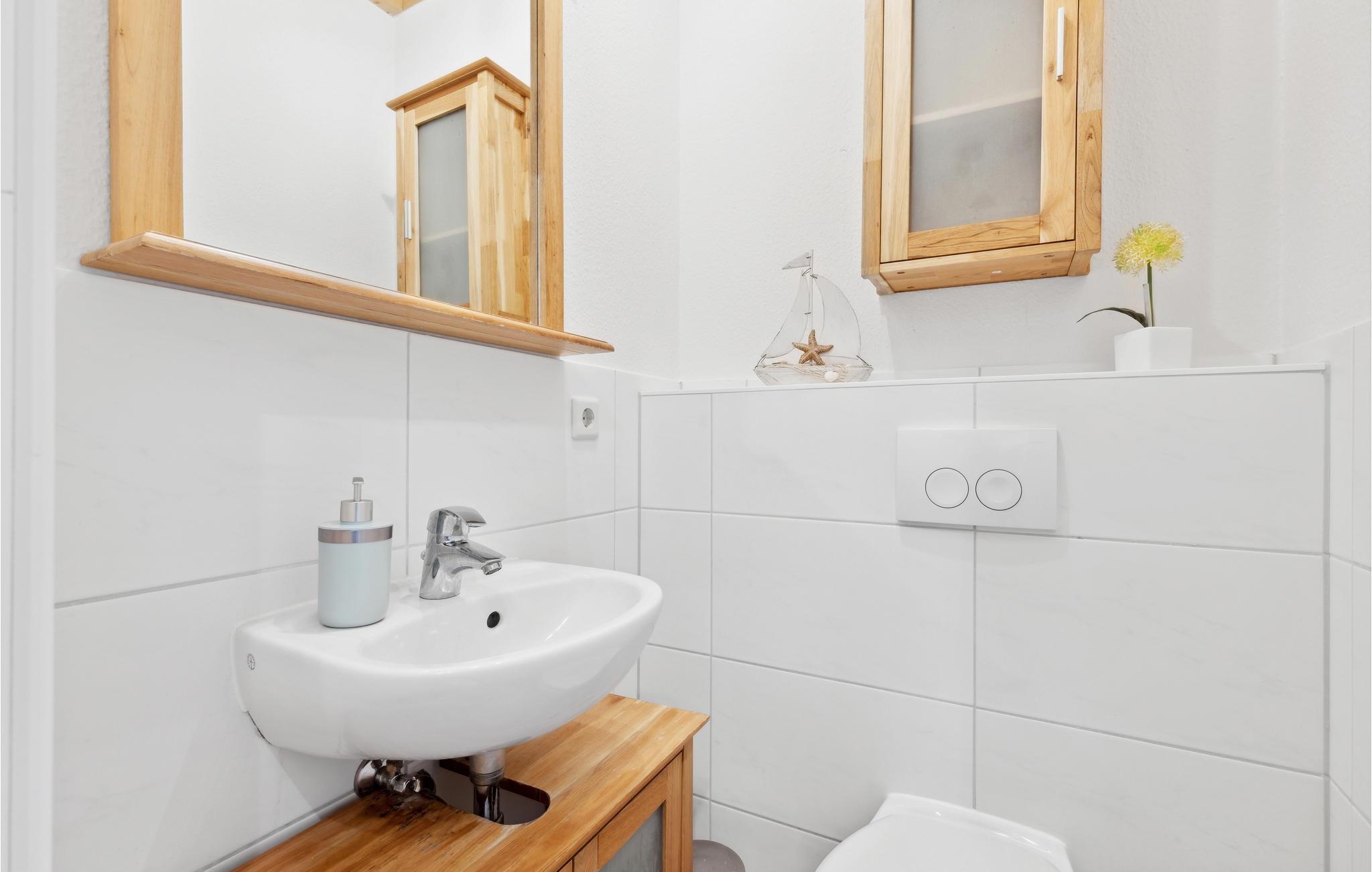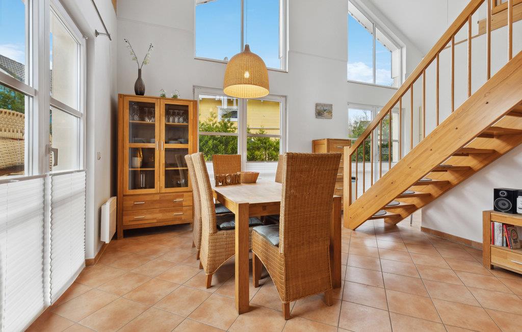 Fra daglig- og spisestuen med åbent køkken og brændeovn kommer I op ad en trappe til det andet, generøse dagligområde på 22 m², hvorfra I kan nyde panoramaudsigten over Østersøen. I stueetagen er der to soveværelser og to badeværelser. Endnu en dobbeltseng er på hemsen. Huset råder desuden over en altan samt en stor terrasse med havemøbler og egen grill.