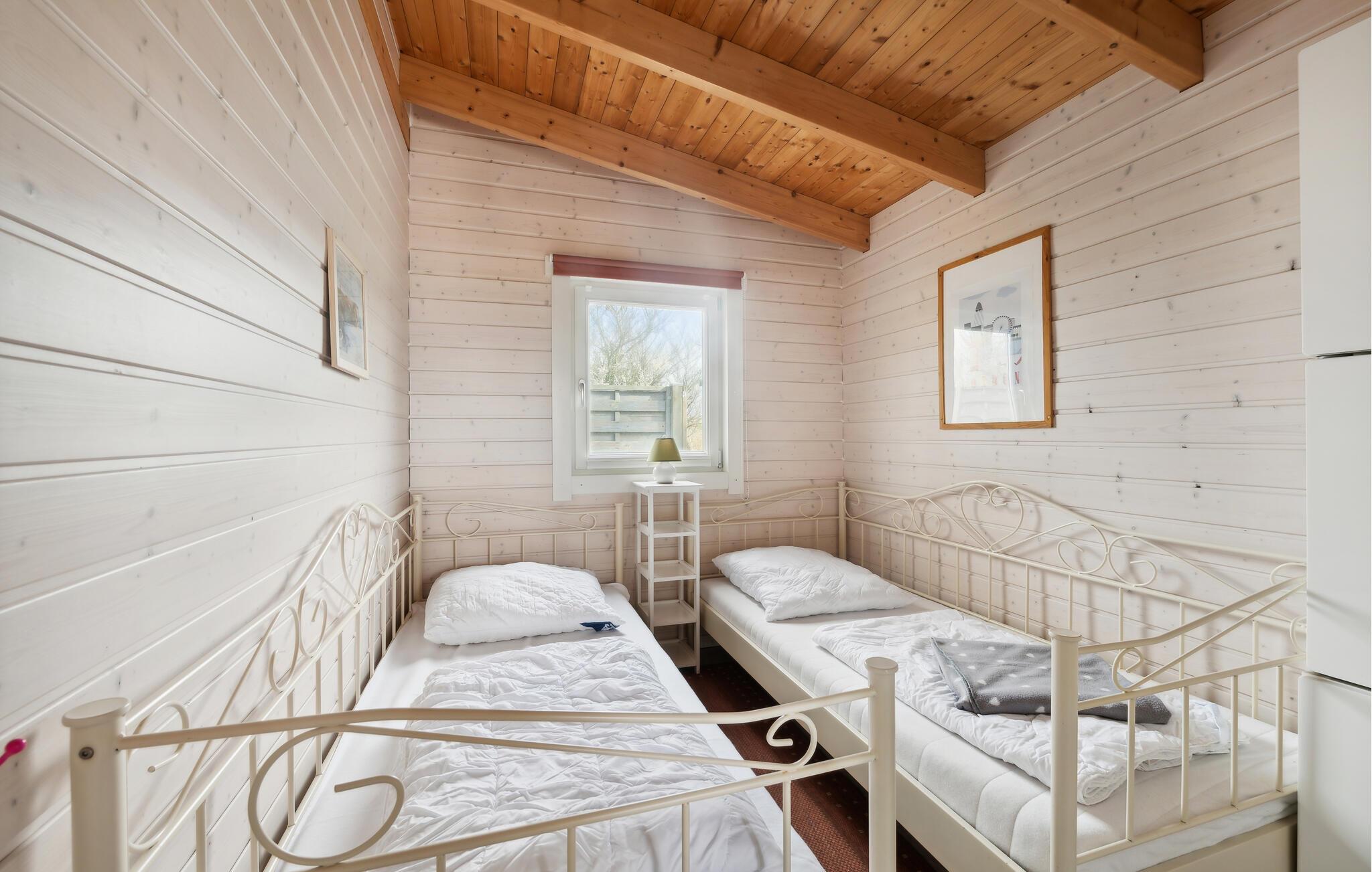 Dette lille træhus kan rumme fire feriegæster.