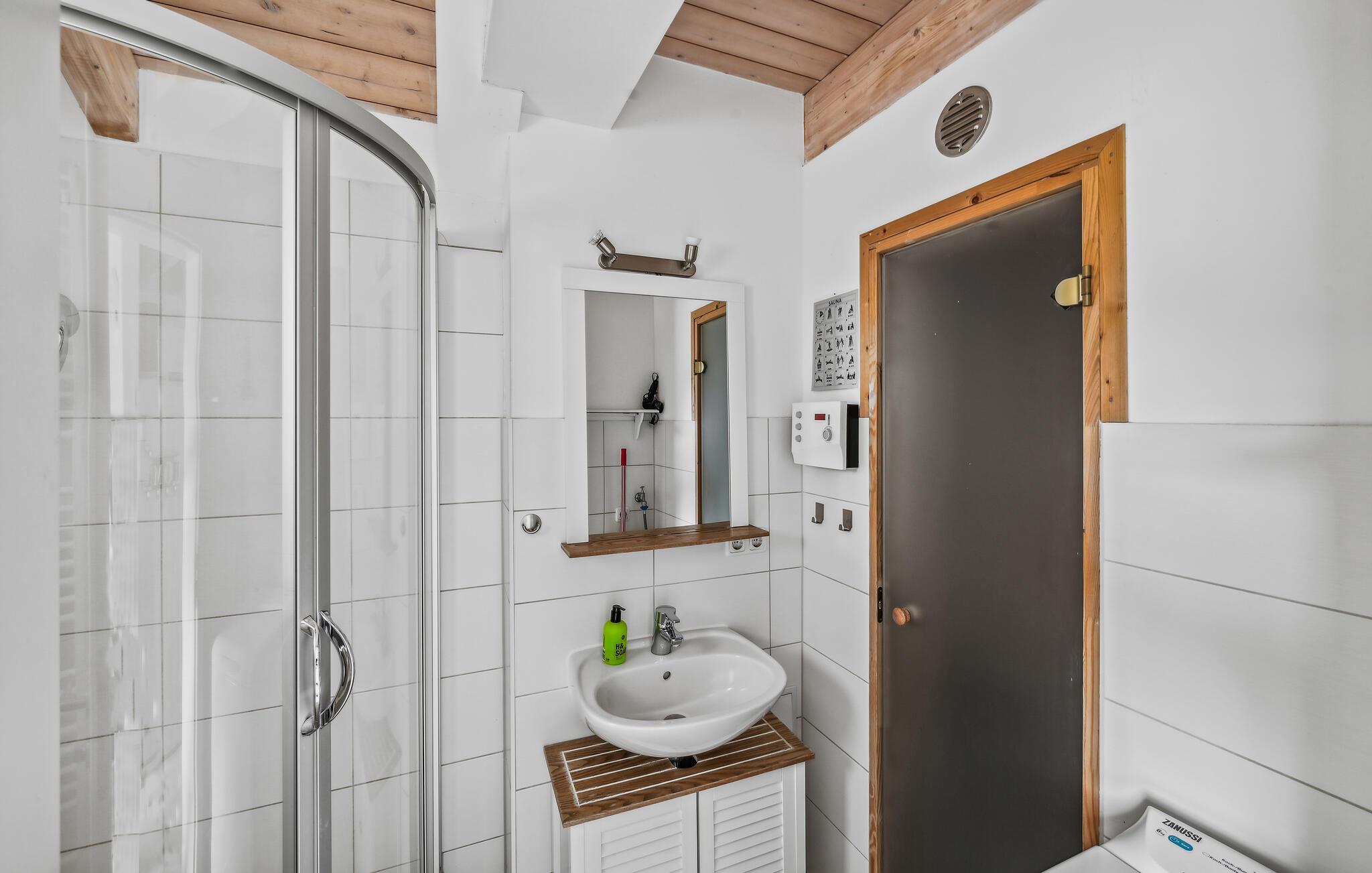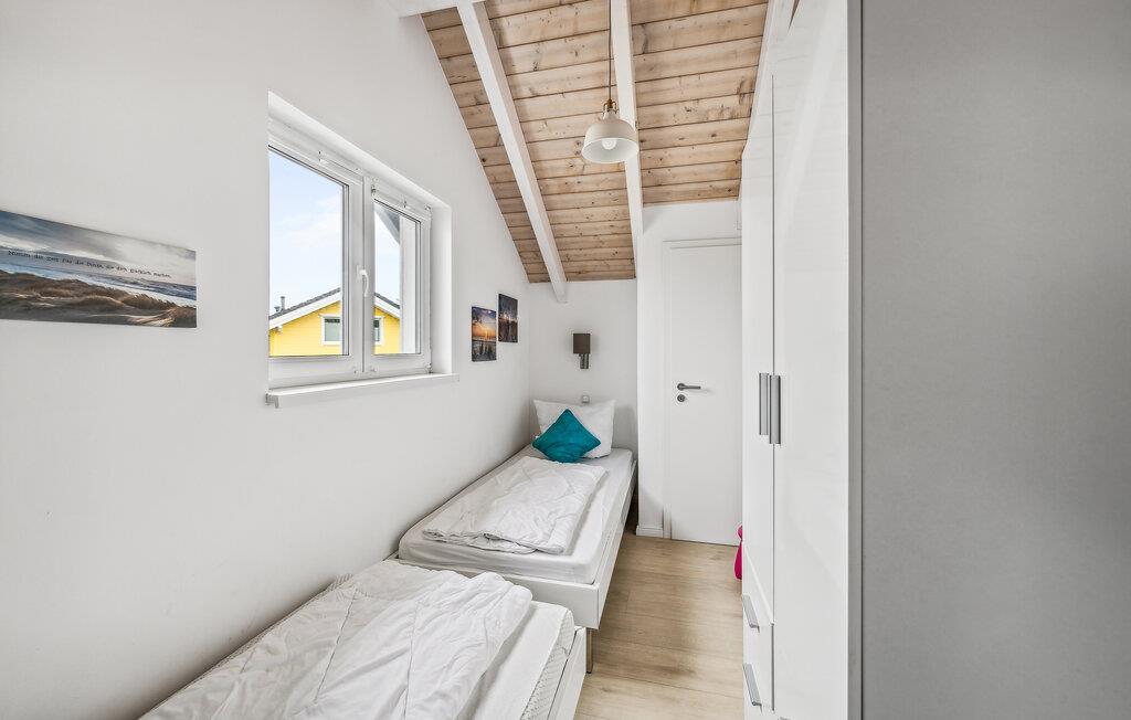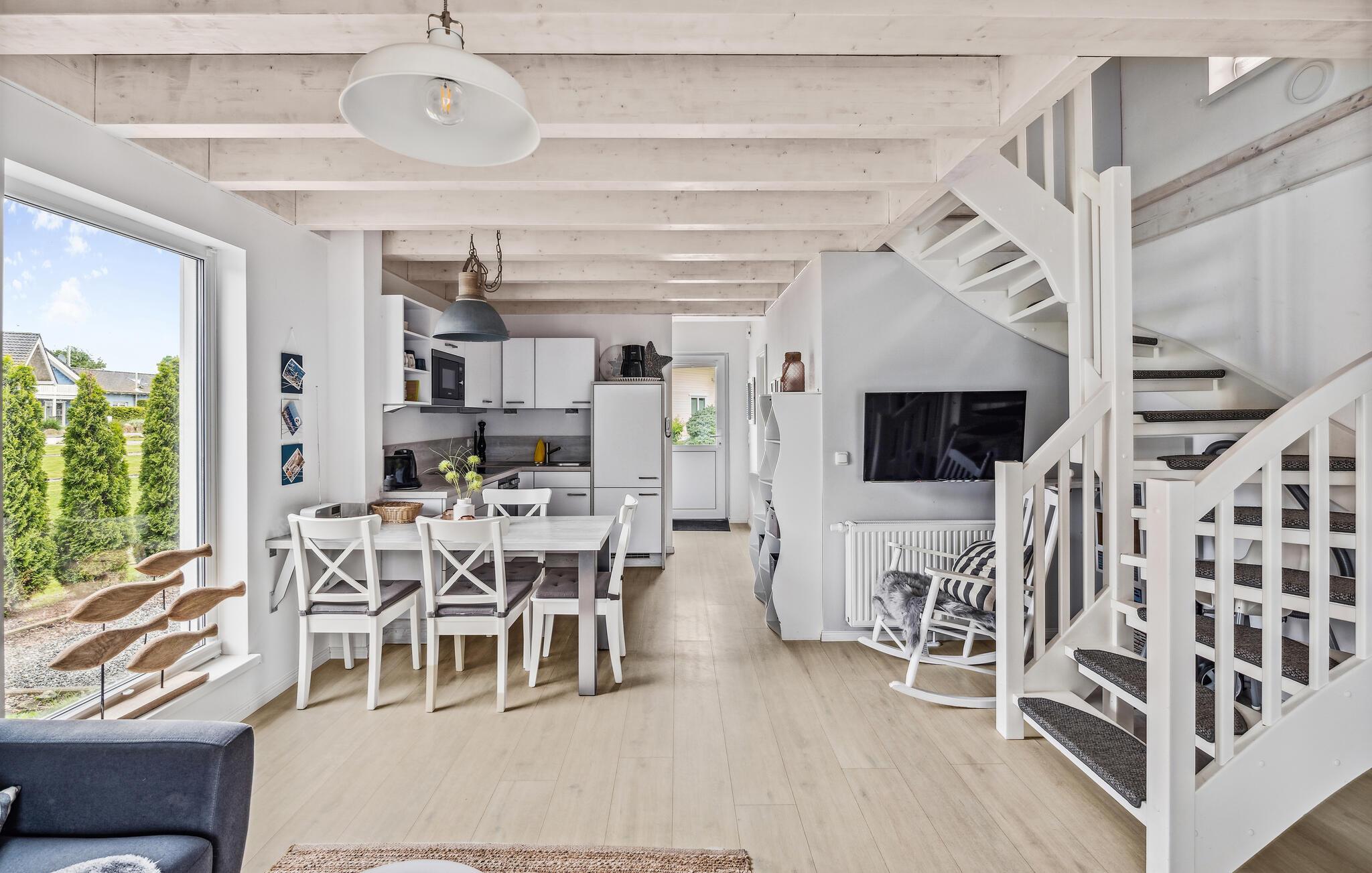 Huset fordeler sig over to etager. I stueetagen er der en åben, hyggelig opholdsstue med tilstødende terrasse, moderne køkken og brusebad med sauna. På første sal kan I nyde solen på den rummelige altan. Der er også to soveværelser og et badeværelse på dette niveau. Her kan I nyde den skønne friske havluft og en fantastisk udsigt over feriebyen fra balkonen. Lækre indretningsløsninger og en vellykket rumdeling gør dette feriehus til et drømmehus i rolige omgivelser.