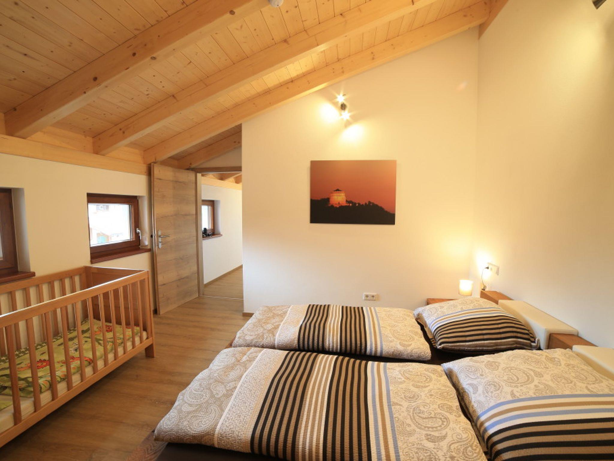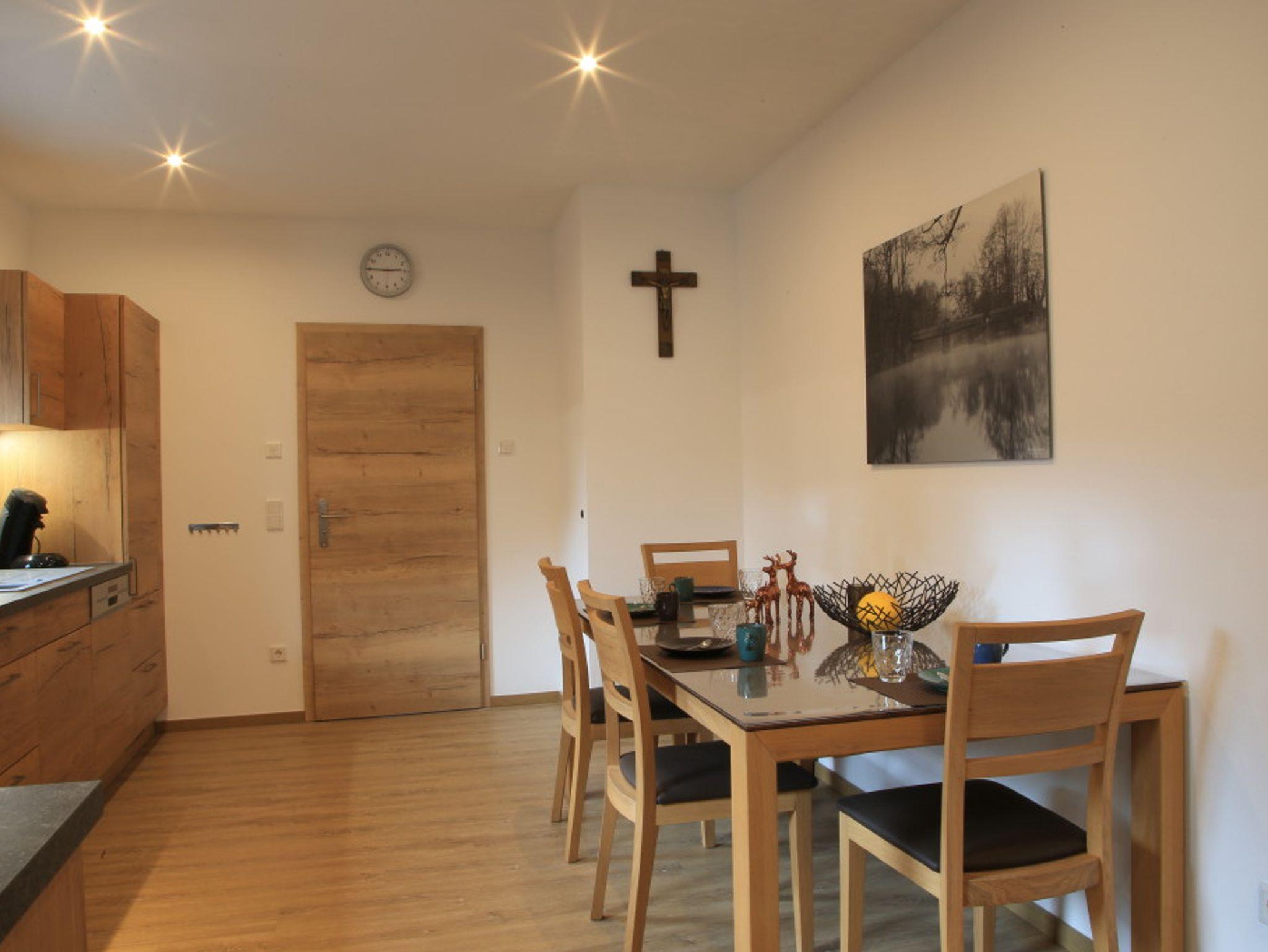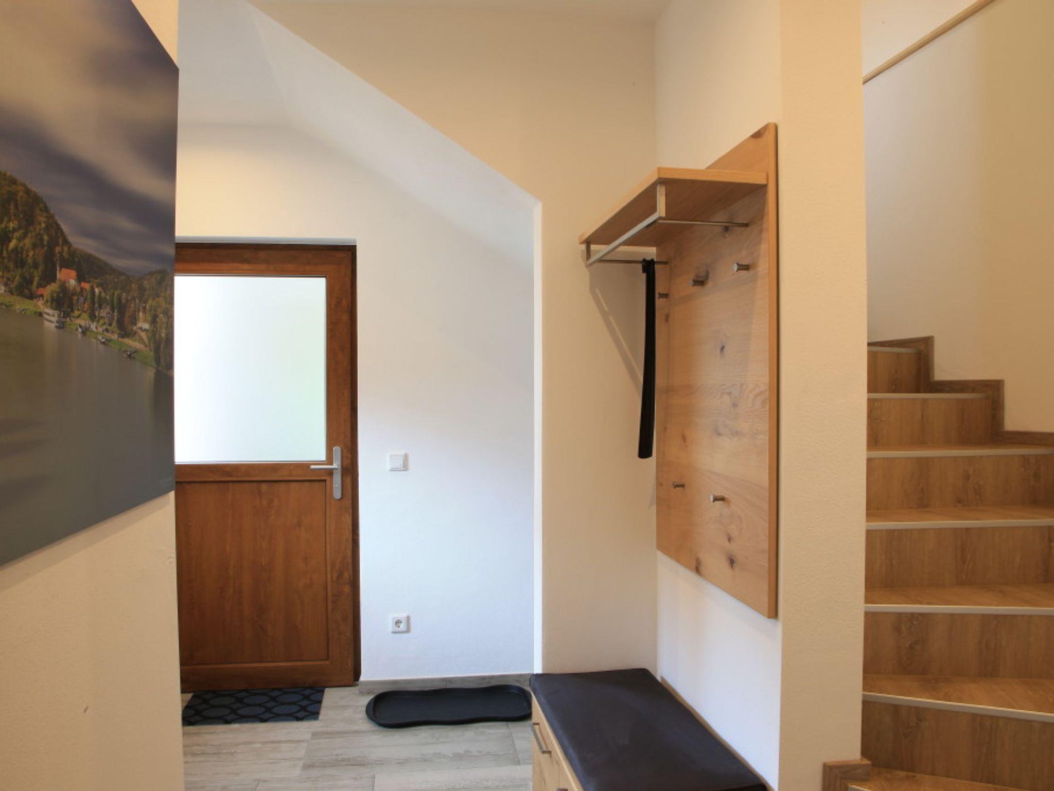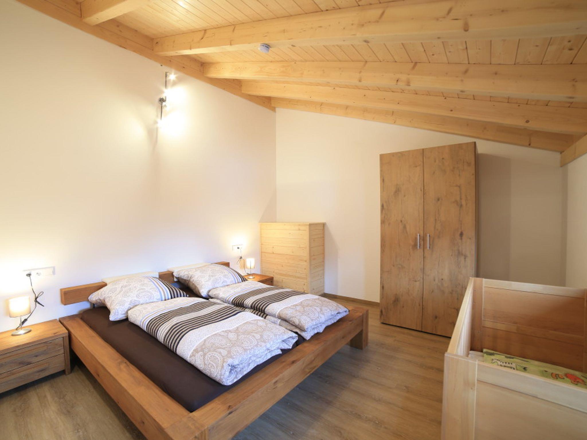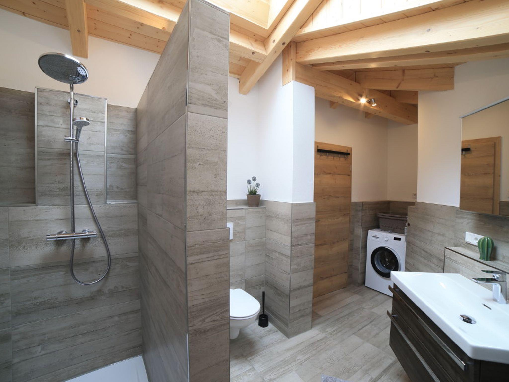 Der rustikale Eingangsbereich zur Ferienwohnung ist komplett überdacht. Ausgestattet mit einer Sitzgruppe können Sie hier gemütliche Abende verbringen. Im Erdgeschoss befindet sich die gut ausgestattete Küche, welche direkt ins Wohnzimmer übergeht. Am großzügigen Küchentisch können Sie Ihr Frühstück einnehmen und Ihren Tag planen. Im Wohnbereich finden Sie eine gemütliche Couch sowie einen Fernseher. Hier können Sie nach einem ereignisreichen Tag einfach mal abschalten. Hier finden Sie Bücher und Spiele. Insgesamt befinden sich drei Schlafzimmer im Obergeschoss, welche Platz für bis zu 6 Personen (maximal 5 Erwachsene) bieten. In unseren großen und gemütlichen Betten können Sie Kraft für den nächsten Tag tanken. Der Sichtdachstuhl strahlt Wärme und Gemütlichkeit aus. Großzügige Schränke bieten genügend Platz für Ihr Gepäck. Die Fenster verfügen über Fliegengitter, sodass Sie ungestört schlafen können. Der größte Raum enthält ein Doppelbett 2 m x 2 m, einen Schrank, zwei Nachtkästchen mit Lampe sowie ein Babybett.Das vordere Schlafzimmer verfügt über ein Bett mit 1,2 m x 2 m, einen großen Schrank mit Kommode sowie ein Nachtkästen.In einem weiteren Zimmer finden Sie ein Bett mit 1,4 m x 2 m, zwei Kommoden sowie ein Nachtkästchen mit Licht, vor.Im Obergeschoss finden Sie das lichtdurchflutete Badezimmer. Ausgestattet mit einer großen, ebenerdigen Dusche. Ein Handtuchheizköper ist vorhanden. Die Schränke bieten Ihnen ausreichend Stauraum für Ihre Utensilien. Eine Waschmaschine steht für Sie bereit. Im Erdgeschoss befindet sich ein weiteres WC. Beide Sanitärraume sind mit Fußbodenheizung und Tageslichtfenstern ausgestattet.
