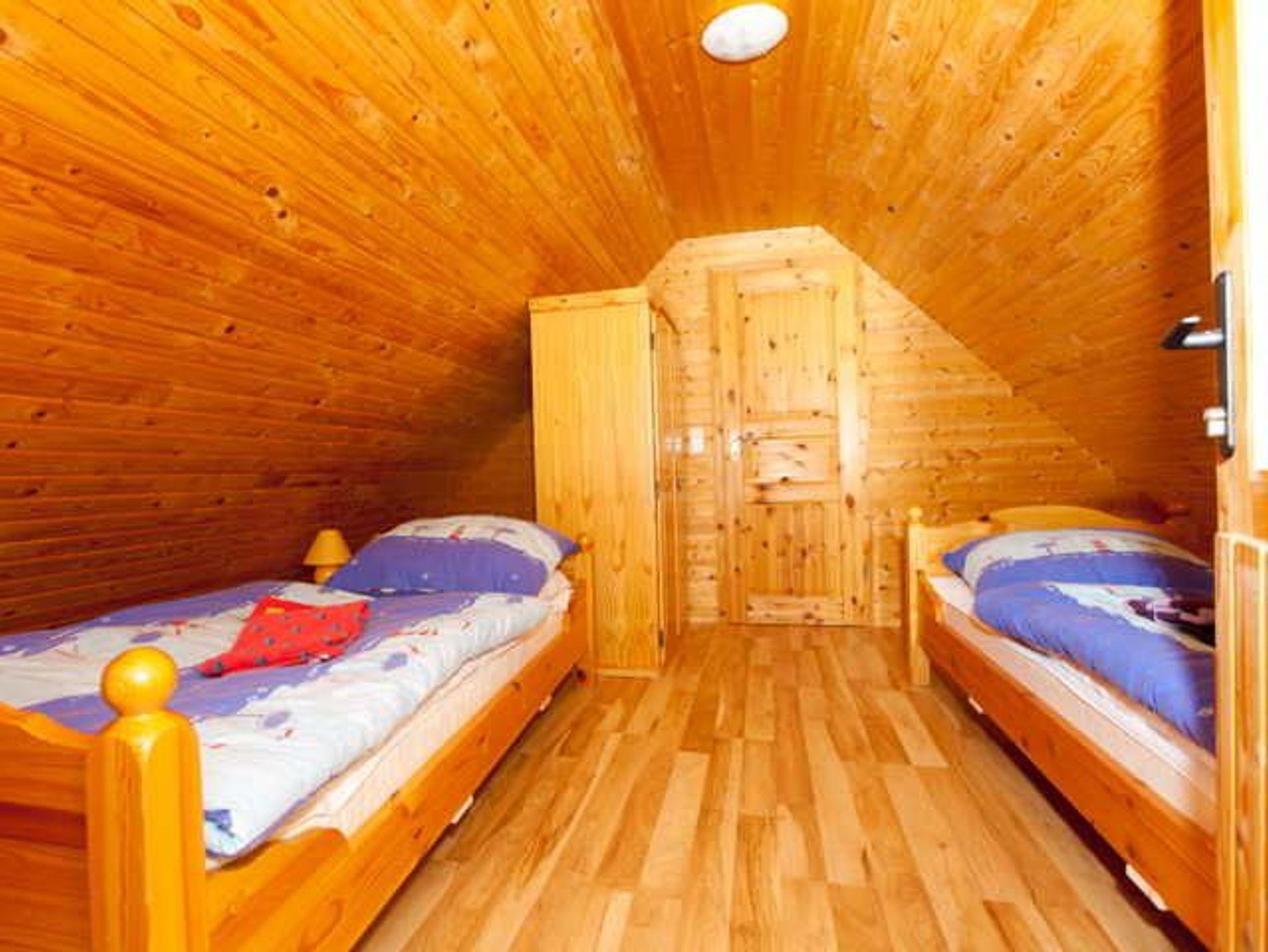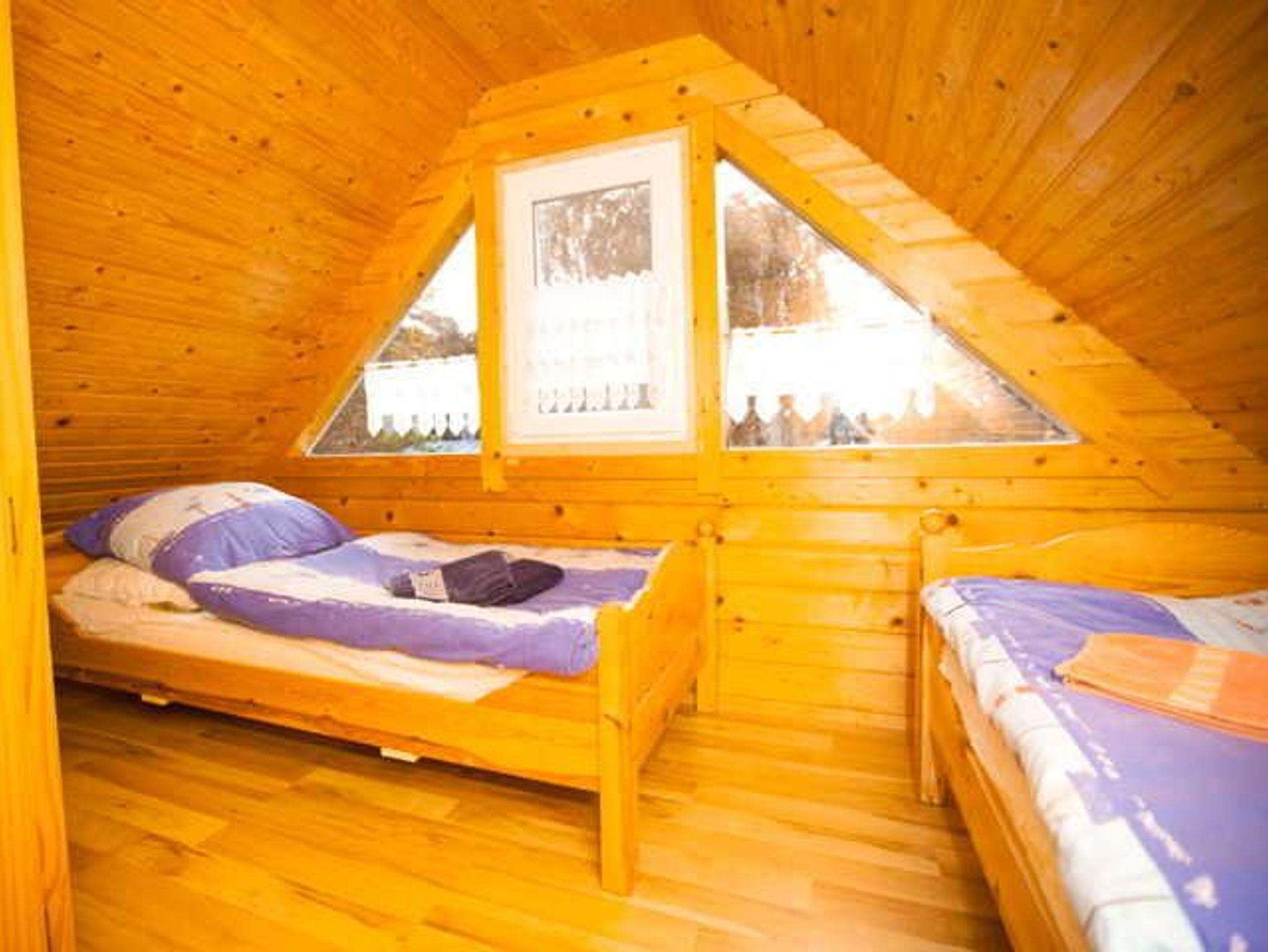 Beide Schlafzimmer im Ferienhaus Kranichblick befinden sich im Obergeschoss und sind mit Einzelbetten ausgestattet, die zusammengestellt werden können. Ein Schlafzimmer hat zudem noch einen Balkon. Von hier aus kann man den freien Blick über die Wiesen bis zum Bodden und der Halbinsel Fischland-Darß-Zingst genießen.