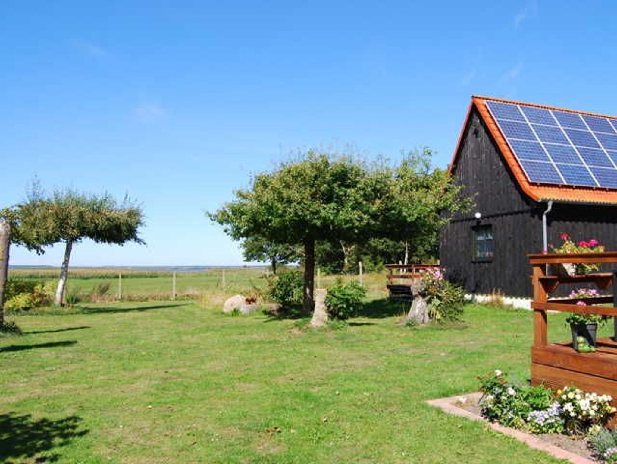 Vom Ferienhaus zum Bodden sind es nur 100 Meter. Hier gibt es einen Anlegesteg, von dem aus gesurft, Boot gefahren oder gebadet werden kann. Beim Vermieter kann ein kleines Ruderboot für 2 Personen gemietet werden.