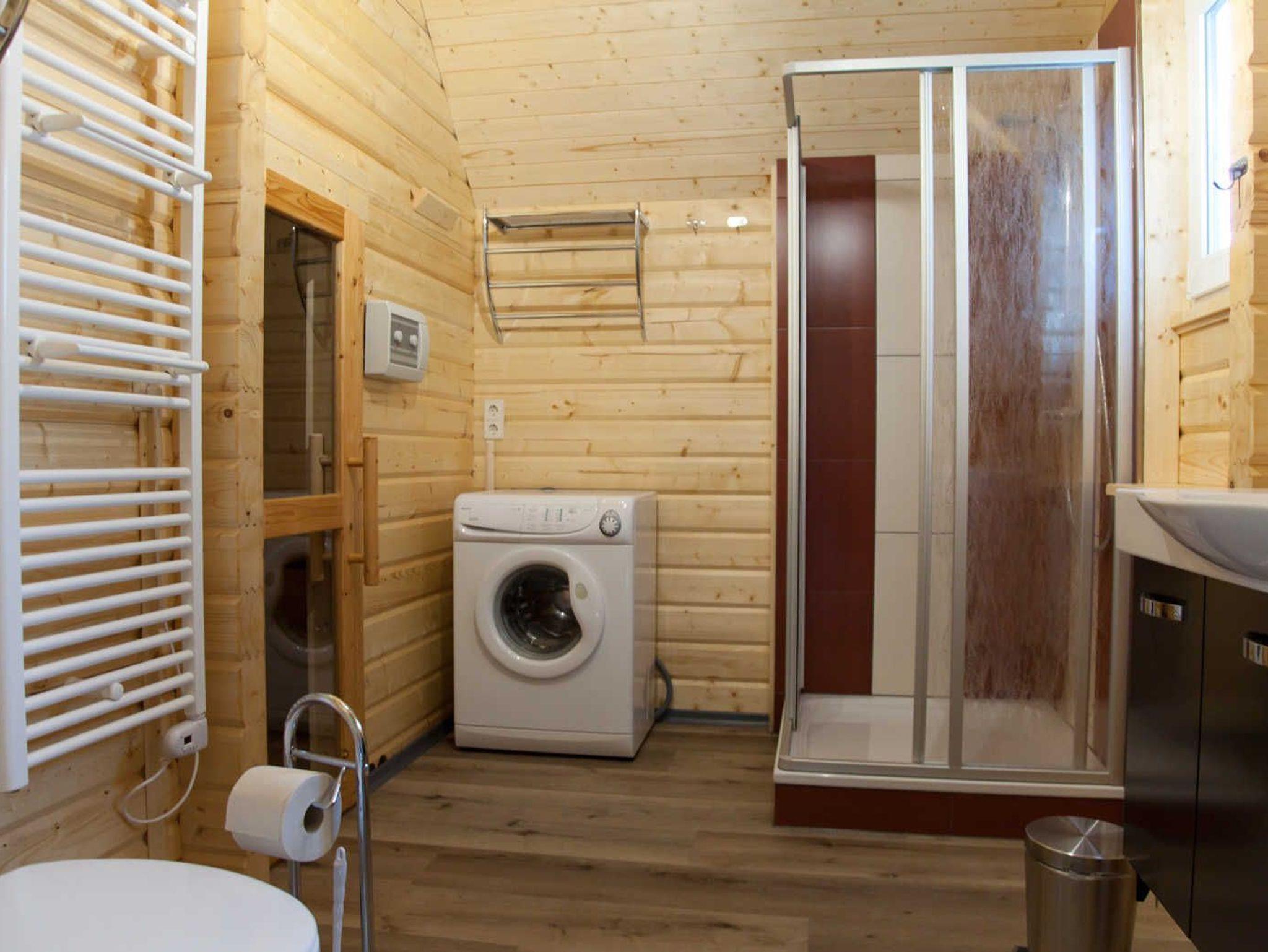Im Erdgeschoss befindet sich das geräumige Badezimmer mit Dusche, WC und Sauna.