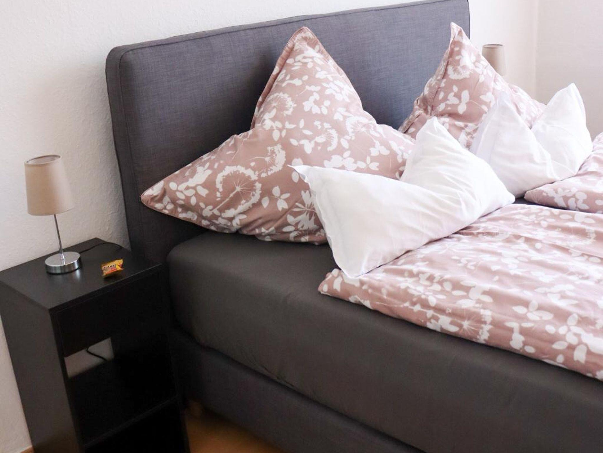 Das Schlafzimmer bietet Ihnen ein bequemes Boxspringbett (180×200) sowie genügend Platz für ein Baby/Reisebett. Dieses kann bei Bedarf gestellt werden.