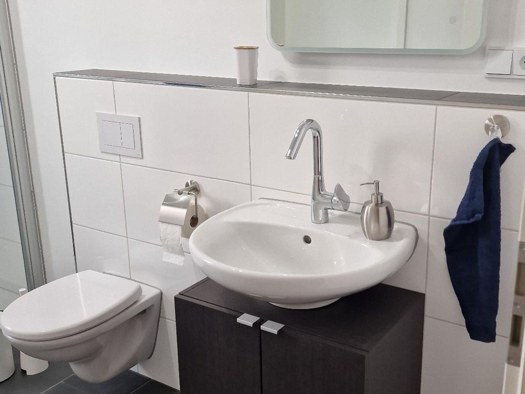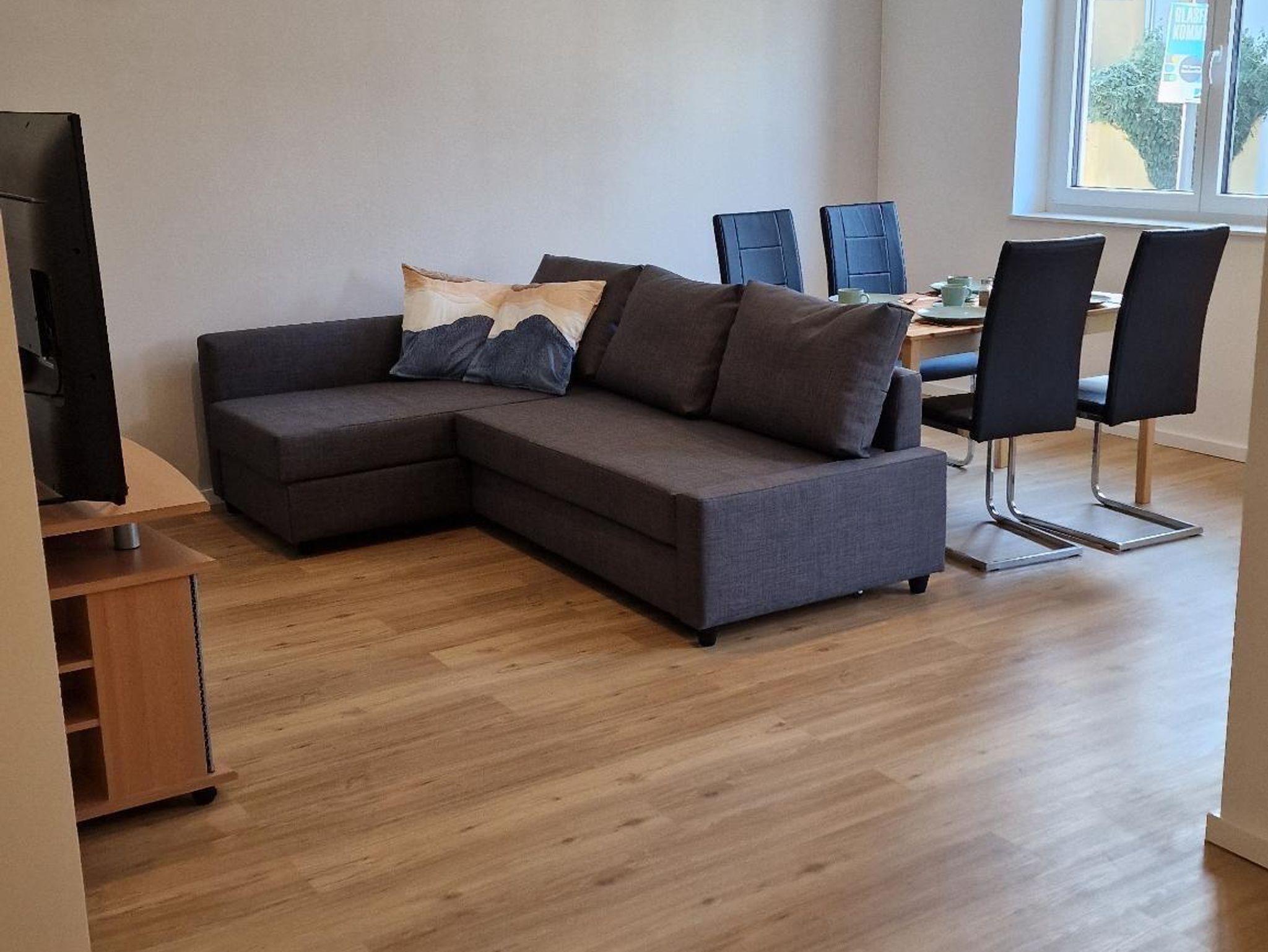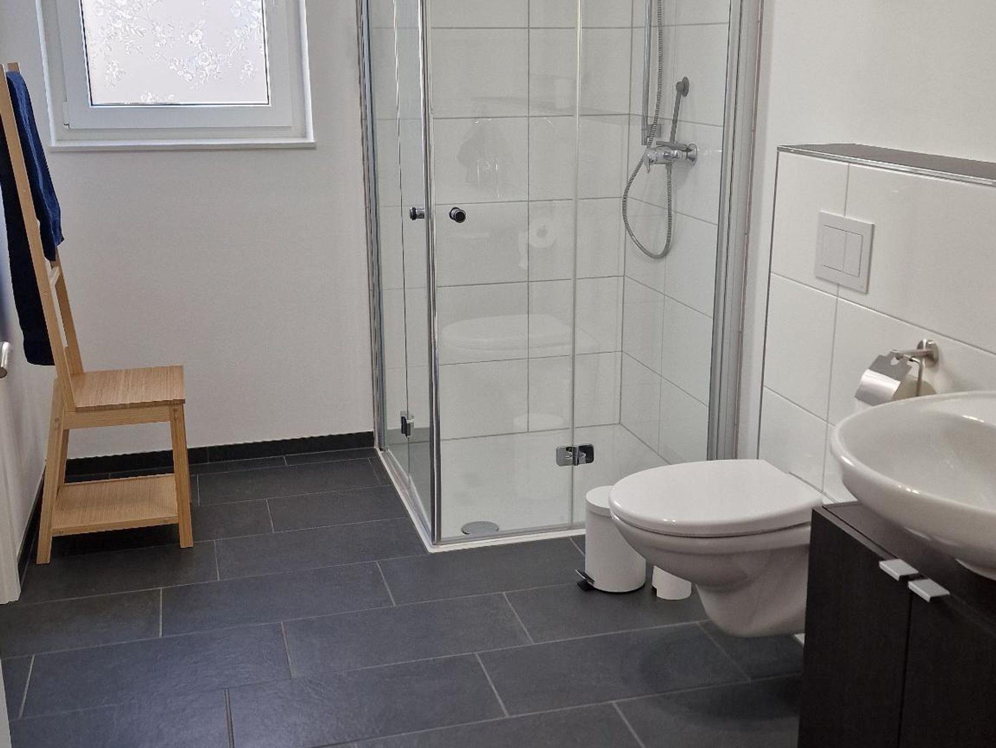 Die Wohnung liegt im Erdgeschoss und besteht aus einem großen, offenen Wohn-, Ess- und Küchenbereich, einem Duschbad mit einer ebenerdigen Dusche, einem Hauswirtschaftsraum mit einer Waschmaschine, einem Schlafzimmer und einer Terrasse. Das Schlafzimmer bietet Ihnen ein bequemes Bett (180 × 200) sowie genügend Platz für ein Baby/Reisebett. Dieses kann bei Bedarf gestellt werden. Im Wohnzimmer steht Ihnen neben einem Flachbildfernseher eine Schlafcouch (140 x 200) zur Verfügung. Die Küche ist mit einem Backofen, einer Mikrowelle, einer Spülmaschine, einem Toaster, einen Kühlschrank mit Gefrierfach und einer Filterkaffeemaschine ausgestattet.