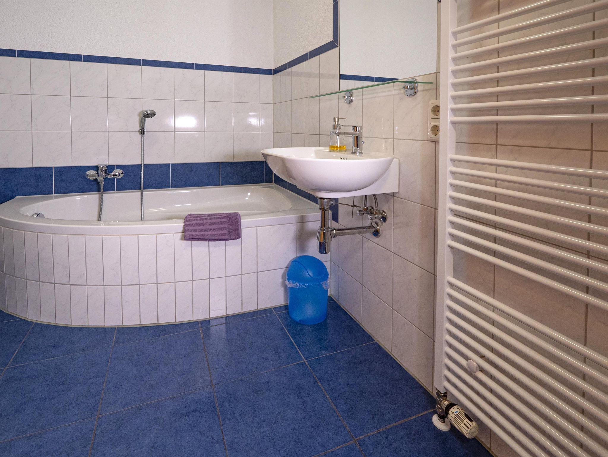 Rauchfreie neu eingerichtete Ferienwohnung für 3 Erwachsene oder 2 Erwachsene + 2 Kinder bis 14 Jahre. Sep. Eingang, 2 sep. Schlafräume - eins davon mit Etagenbett - komplett eingerichtete Küche mit Essecke, Wohnzimmer, 1 Bad mit Dusche / WC, 1 Bad mit Wanne / WC, Terrasse mit Gartenmöbeln und Grillmöglichkeit, Sandkasten und Schaukel, Sat-TV, Internet-Anschluss kostenlos. Hund erlaubt (5,00 € pro Tag)