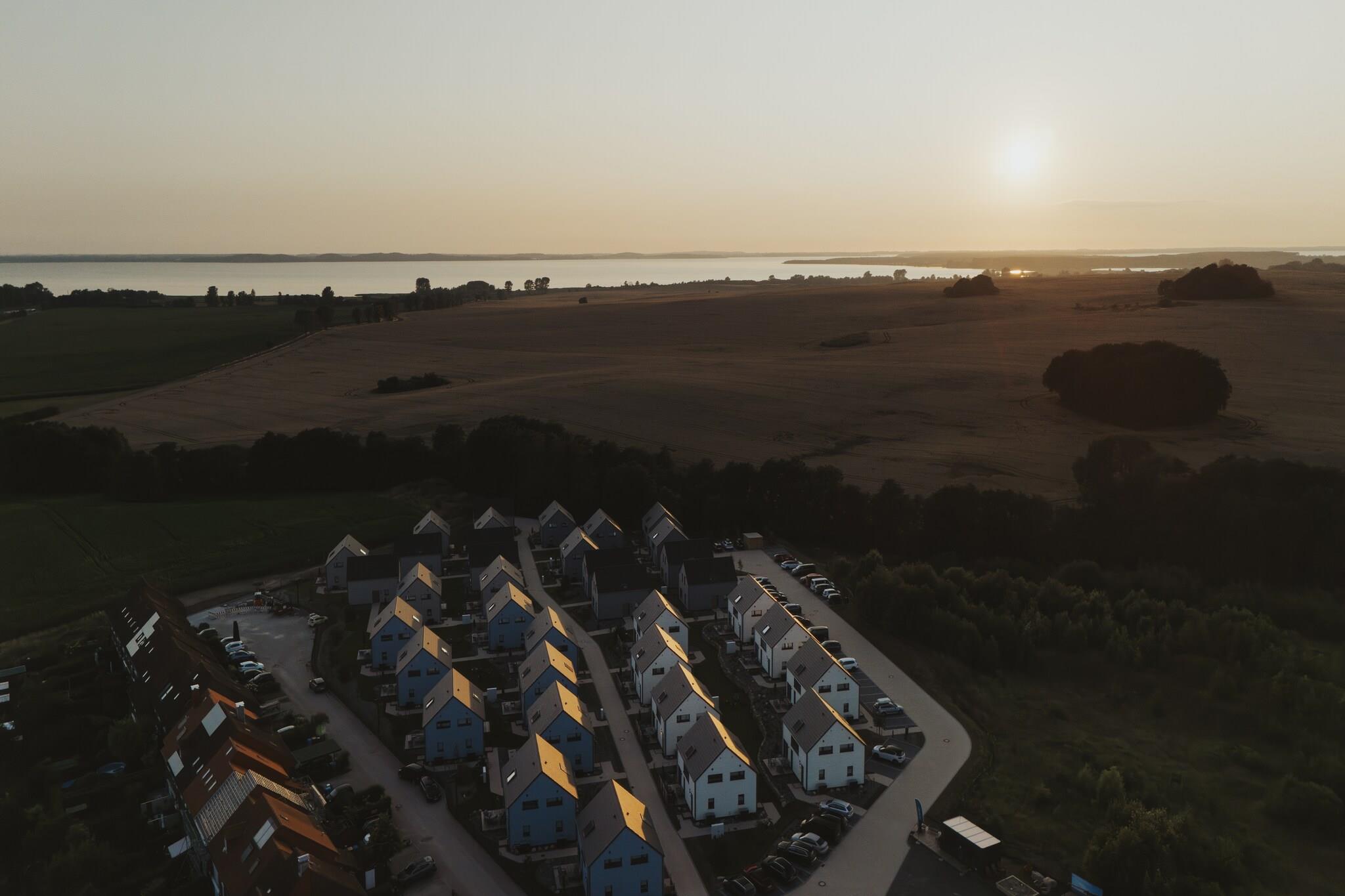 Ikke langt fra den glitrende Bodden-lagune, beliggende i de blide bakker i det nordlige Rügen, ligger den nybyggede feriepark i Sagard – et sted, der udstråler ro og lover afslapning. Her, hvor den salte baltiske brise rasler gennem træerne, og lyset danser i varme toner hen over markerne, udfolder sig en feriepark, der er perfekt egnet til korte flugter fra hverdagen. Resortets dobbelthuse er charmerende og indbydende – hver især et lille fristed for op til fire personer. Med kærligt designede facader, rummelige terrasser og havemøbler, der inviterer til at blive hængende, tilbyder de de perfekte rammer for afslappende dage. Uanset om man nyder morgenmaden udendørs, læser i skyggen eller lytter til naturen – vil alle finde deres yndlingssted her. Indenfor finder gæsterne lyse værelser, et moderne badeværelse og møbler, der kombinerer komfort og hygge. Nærheden til Bodden-lagunen giver muligheder for gåture langs vandet, cykelture gennem landskabet eller udflugter til de nærliggende attraktioner på øen Rügen. Det er mere end bare en feriepark – det er et sted, hvor tiden går langsommere, tankerne finder ro, og minder skabes, der hænger ved længe efter. Højdepunkter inkluderet: Slutrengøring, alle forbrugsomkostninger, linnedpakke, Wi-Fi, parkering, 1 hund Bemærk venligst: Én hund er inkluderet i lejeprisen. En anden hund kan tilføjes og skal betales på stedet (40 EURO pr. ophold).