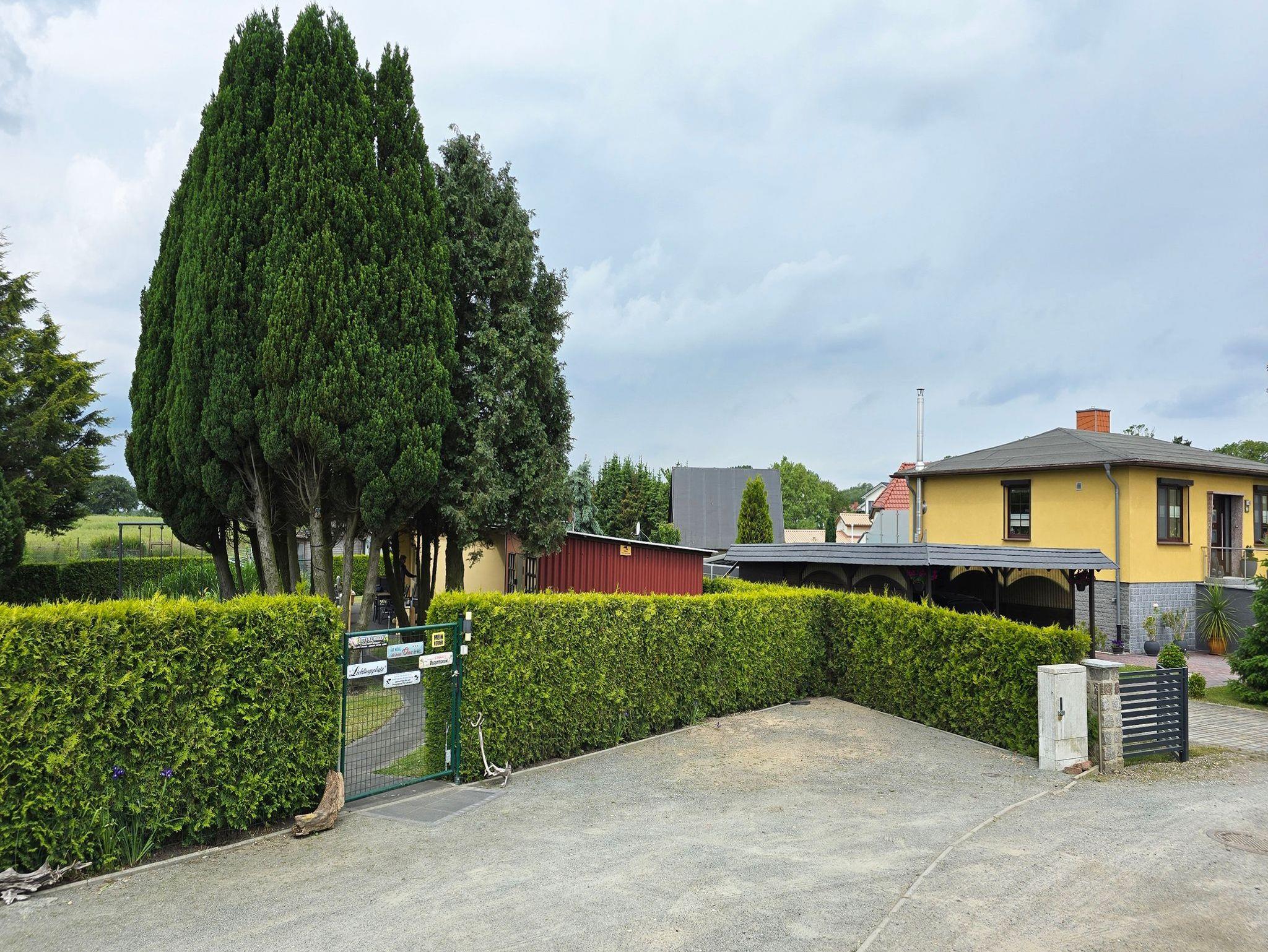 ? Ein Parkplatz befindet sich direkt vor dem Gartengrundstück.