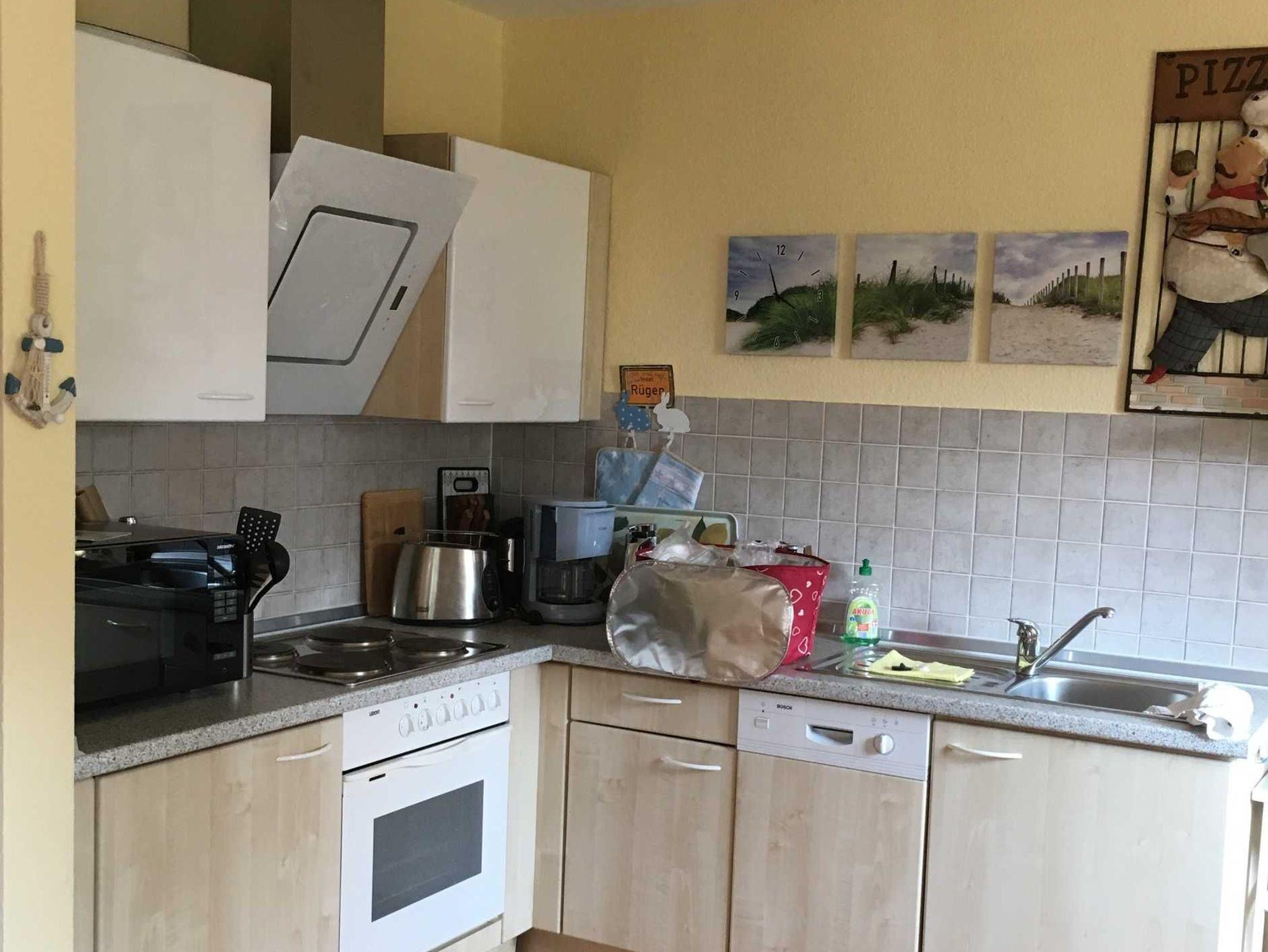 Die gemütliche Ferienwohnung ist ebenerdig und hat eine große möblierte Terrasse. Zur Ferienwohnung gehört ein reservierter Parkplatz. Sie besteht aus einem Wohn-/Essraum mit Schlafcouch (für bis zu zwei Kindern) und einem Elternschlafzimmer sowie einem Tageslichtbad mit Dusche. Alles, was Sie benötigen, finden Sie dort vor. Anfang 2024 wurde in der Ferienwohnung eine neue Küche eingebaut.