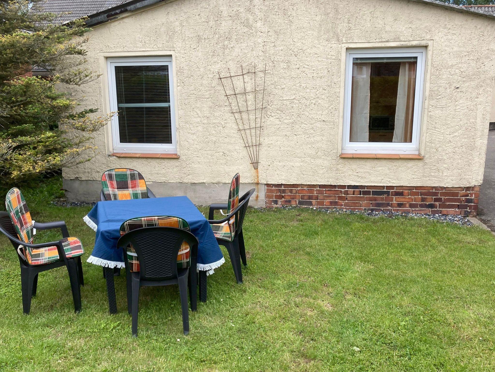 Das Ferienhaus ist einfach ausgestattet mit einem Wohnraum mit Couchgarnitur, Tisch, Radio+TV, Küche mit Esstisch, Kaffeemaschine, Toaster und Geschirr, 2 Schlafzimmern mit einem Doppelbett und zwei Einzelbetten, Badezimmer mit Dusche und WC, eigener PKW Stellplatz auf dem Grundstück, Sitz und Liegemöglichkeiten im Freien vorhanden. Grillen möglich. Bettwäsche ist ab 4 Übernachtungen inklusive, ihre Handtücher bringen Sie bitte in jedem Fall mit.