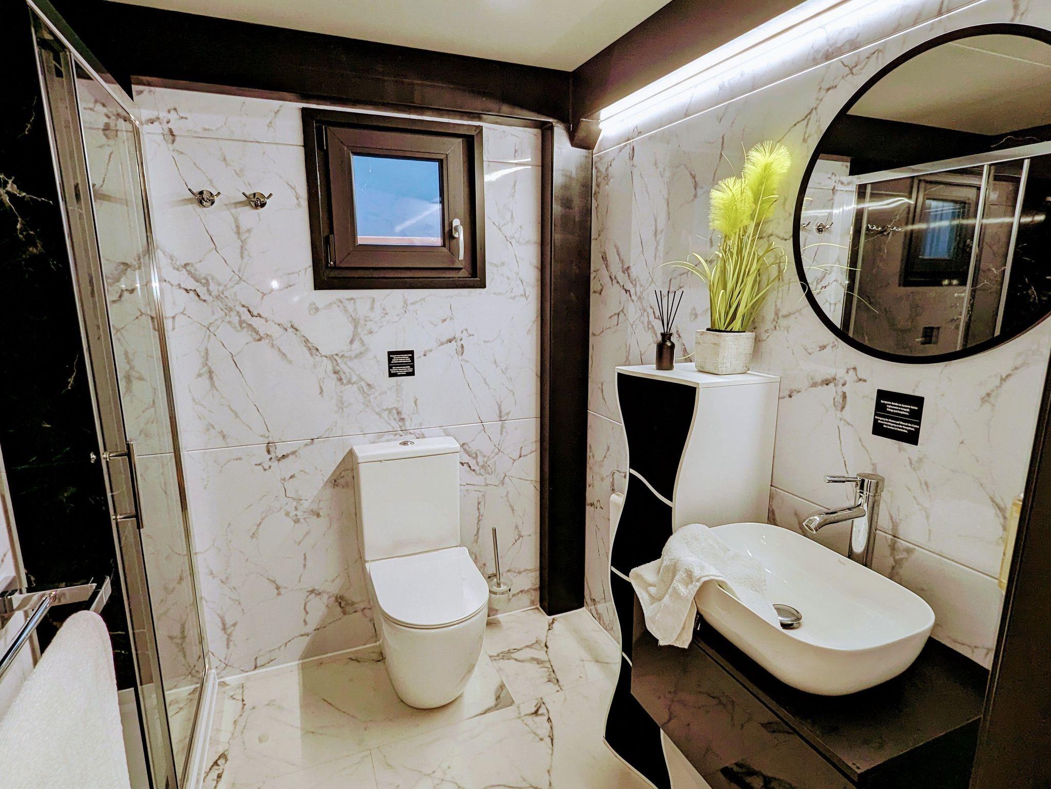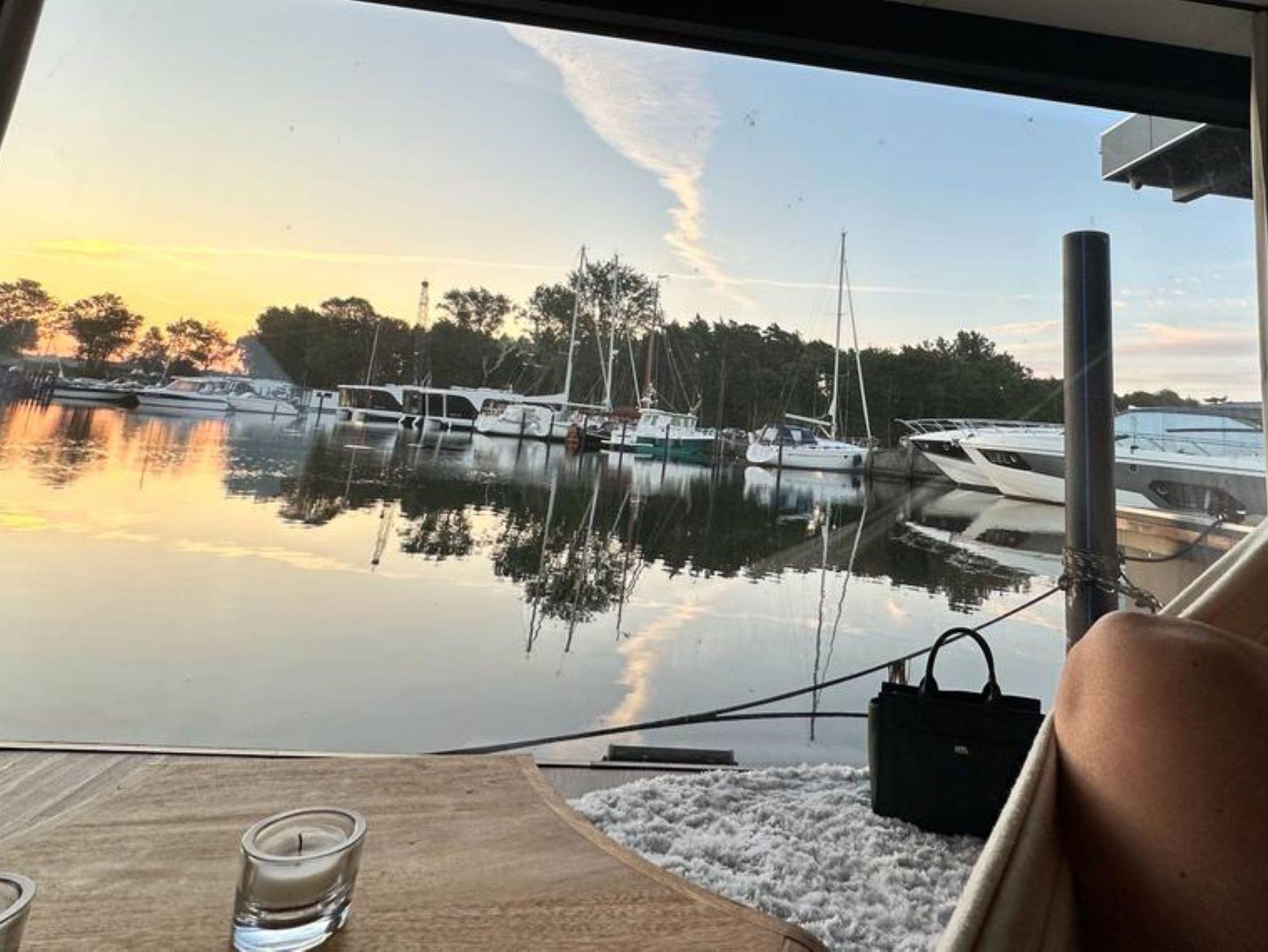 Unser Hausboot, die schwimmende Hafensuite DeLuxe, im Hafenbecken der kleinen Marina Martinshafen gelegen, bietet Luxus pur auf ca. 60 m² Relaxwohnfläche und 2 Außenterrassen auf 2 Etagen. Ein großes Panoramafenster verstärkt den weitläufigen Raumeindruck und eröffnet tolle Blicke auf das Hafengeschehen. Eine kleine Trockensauna, eine Whirlwanne direkt vor dem Doppelbett (140 x 200 cm), ein elektrischer Massagesessel und ein klassischer Kamin sorgen für besondere und persönliche Wellnessmomente an Bord. Eine Essecke mit einer kleinen Küchenzeile bietet Möglichkeiten für eine einfache Selbstversorgung. Hier stehen ein Kühlschrank, eine BEKO-Kaffeemaschine, ein Toaster, ein Wasserkocher und ein Eiswürfelmaker zur Verfügung. Entertainmentinfrastruktur ist mit W-LAN, 2 Smart-TV`s und einer Bose-Homesound-500-Anlager vorhanden. 2 Bäder mit großen bodentiefen Duschen, Waschbecken und WC sowie eine zusätzliche kleine Kajüte mit einer Doppelkoje (140 x 200 cm) runden das Luxusangebot der schwimmenden Hafensuite ab. Eingebettet in das Naturschutzgebiet rund um den Großen Jasmunder Bodden und ideal zentral gelegen im nördlichen Teil der Insel Rügen liegt die Hafenlady in geschützter Lage in der Marina Martinshafen. Lassen Sie den Blick schweifen über die den gesamten Tag glitzernde Wasseroberfläche oder genießen Sie eine Flasche Wein mit Blick auf den Sonnenuntergang am Ende eines ereignisreichen Urlaubstages. Unsere einmalige Urlaubs-Location für Sie liegt fest im Hafen vertaut - bereit für entspannte Stunden und einmalige Urlaubs-Momente. Mehr Urlaub mit und auf dem Wasser geht nicht. Mit viel unberührter Natur, direkt auf dem Wasser und einem kleinen Strandabschnitt direkt am Hafen. Genießen Sie bei uns ganz entspannte Stunden. Oder bei entsprechendem Wetter die sehr guten Voraussetzungen für Kite- oder Wind-Surfen. 2 SuP`s gehören zur Bordausstattung für einen Wasserausflug auf dem Bodden dazu. Auf jeden Fall werden Sie nach unvergesslichen Momenten bei einem Glas Wein mit Blick auf den Sonnenuntergang über dem großen Jasmunder Bodden immer wieder zurückkommen wollen – in die schwimmende Hafensuite De Luxe in der Marina Martinshafen.