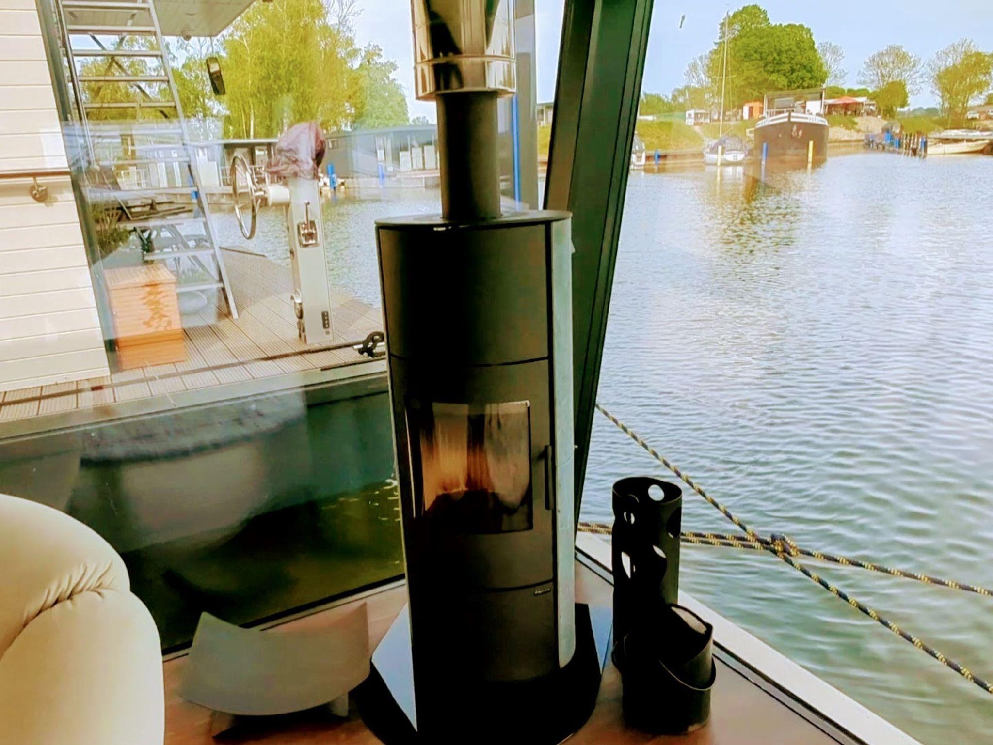 Mittelpunkt unserer schwimmenden Hafensuite DeLuxe bildet der große kombinierte Wohn-/Schlafraum. Ein Doppelbett mit 140 x 200 cm - leicht erhöht platziert - ermöglicht einen herrlichen Blick direkt durch das große Panoramafenster in den Hafen, bzw. auf das Wasser. Vor dem Bett ist eine kleine Badewanne mit Whirlfunktion platziert. Ein elektrischer Massagesessel und ein klassischer Kamin komplettieren den Luxusauftritt des schwimmenden Luxusapartments. Ein Esstisch und eine kleine Küchenzeile mit Kühlschrank, Spüle, Kaffeemaschine, Wasserkocher, Toaster und Eiswürfelmaschine ermöglichen eine kleine kulinarische Eigenversorgung. 2 große Bäder, jeweils mit WC, Waschbecken und großer Dusche und ein 2. separater kleiner Schlafraum mit einem Doppelbett (140 x 200 cm) runden den großzügigen Gesamtauftritt der schwimmenden Suite ab. In einem Bad befindet sich noch eine kleine Trockensauna für 2 Personen. 2 Außenterrassen bieten darüber hinaus zusätzliche Möglichkeiten, das Zusammenspiel von Wasser, Tierwelt und Natur zu genießen. Im Hafen selbt ist ein Außenstellplatz für unsere Gäste reserviert. Ferner bieten wir kostenloses WLAN an.