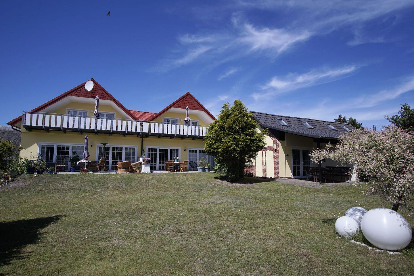Das Ferienhaus Honigtopf verfügt über zwei nebeneinanderliegende Ferienwohnungen namens Bernstein und Märchenwald, die jeweils mit überdachten Südbalkonen ausgestattet sind. Zusätzlich gibt es das Häuschen Kranichnest mit einer überdachten Terrasse. Das Highlight ist das herrliche Gartengrundstück, welches ca. 1.500m² groß ist und lauschige Rückzugsecken sowie einen Grillplatz zur gemeinschaftlichen Nutzung bietet. Hier können Sie richtig entspannen und Ihre Seele baumeln lassen.
