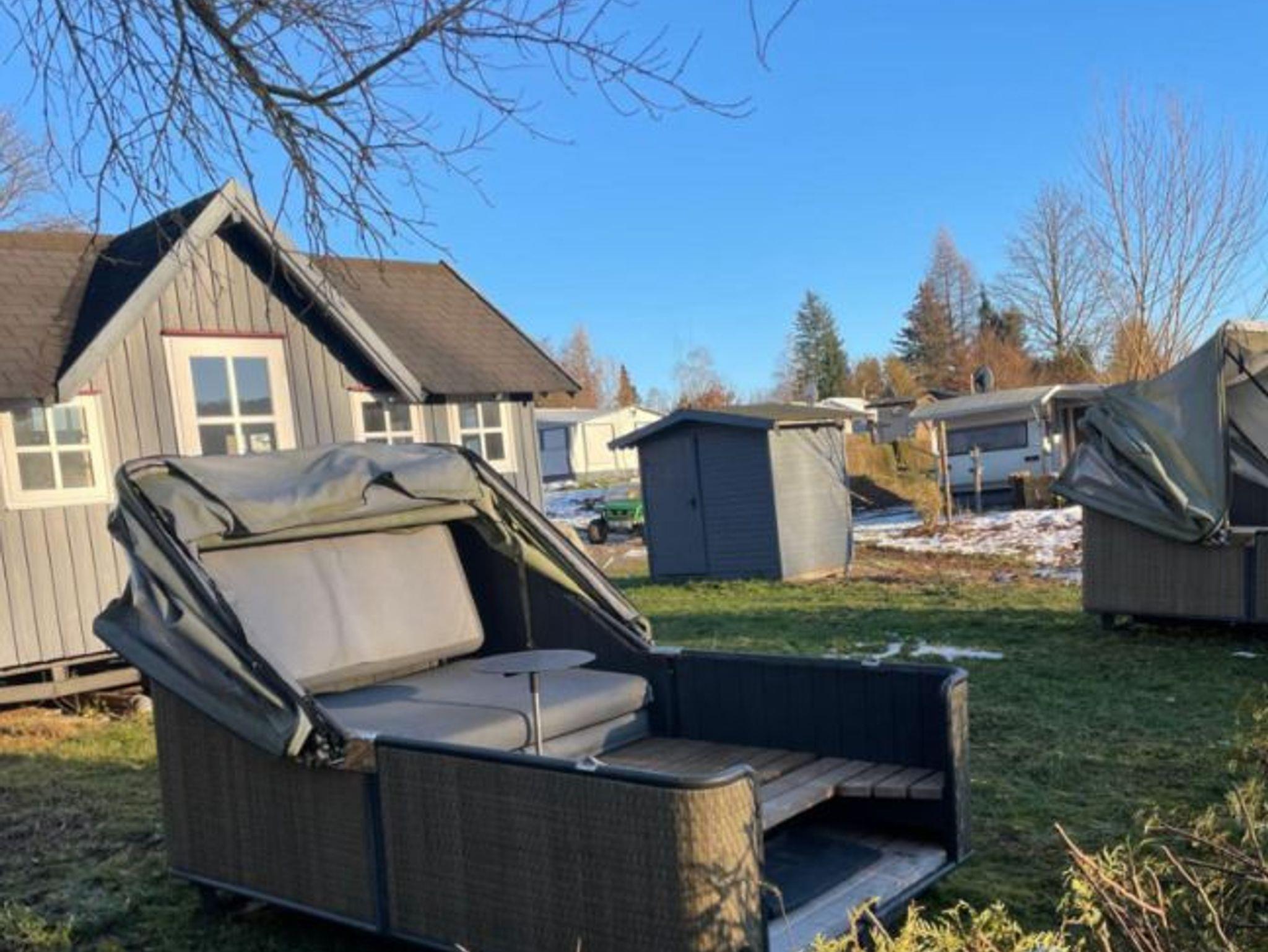 Camping und Ferienpark Humboldtsee, Holzhütte mit Schlafstrandkorb