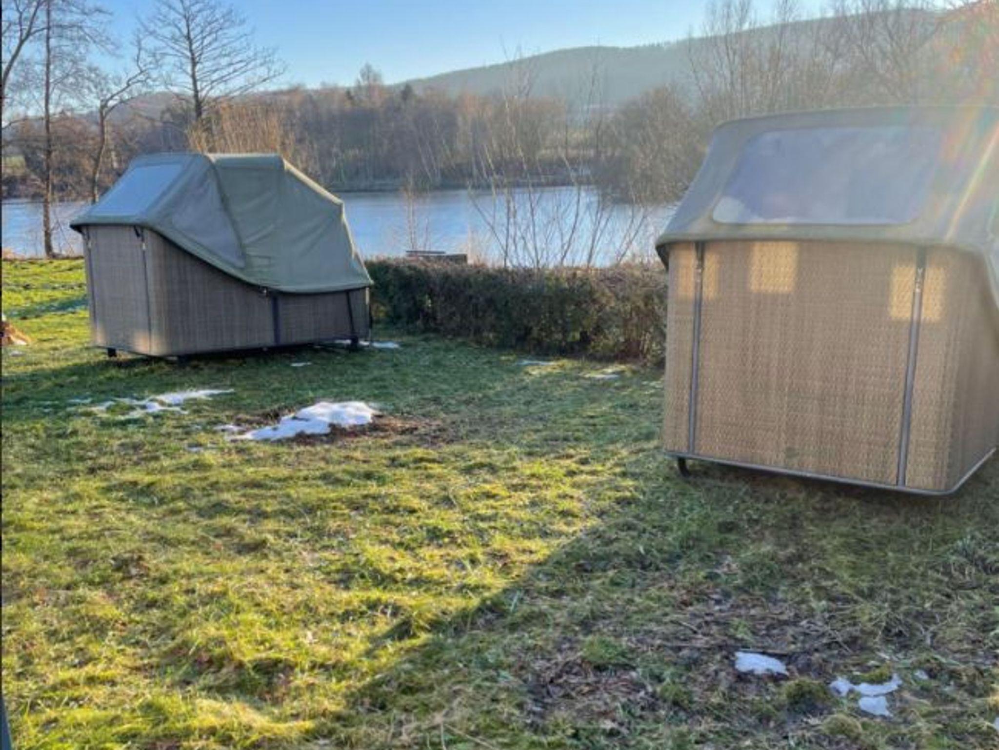 Deine Nächte verbringst Du nicht in der Hütte, sondern unter freiem Himmel! Direkt vor dem Blockhaus stehen zwei komfortable Schlafstrandkörbe – jeder für zwei Personen. Mit Blick auf den glitzernden Humboldtsee kannst Du Dich in die Kissen kuscheln, den Sternenhimmel bewundern und das sanfte Rauschen der Natur genießen.