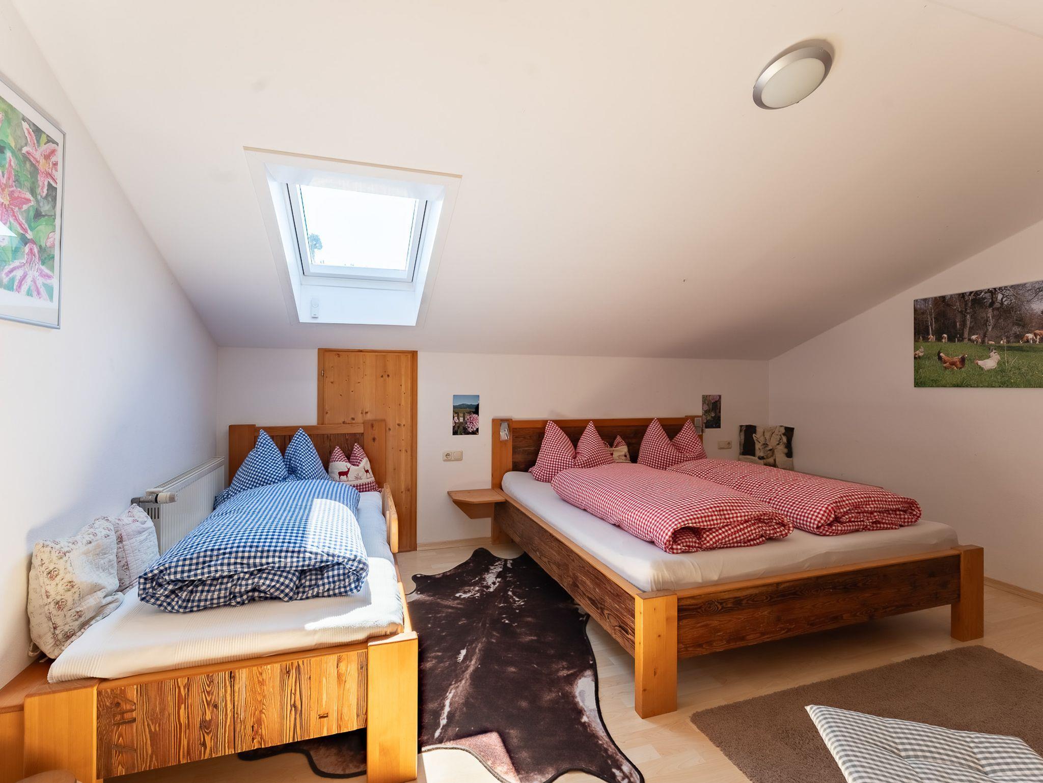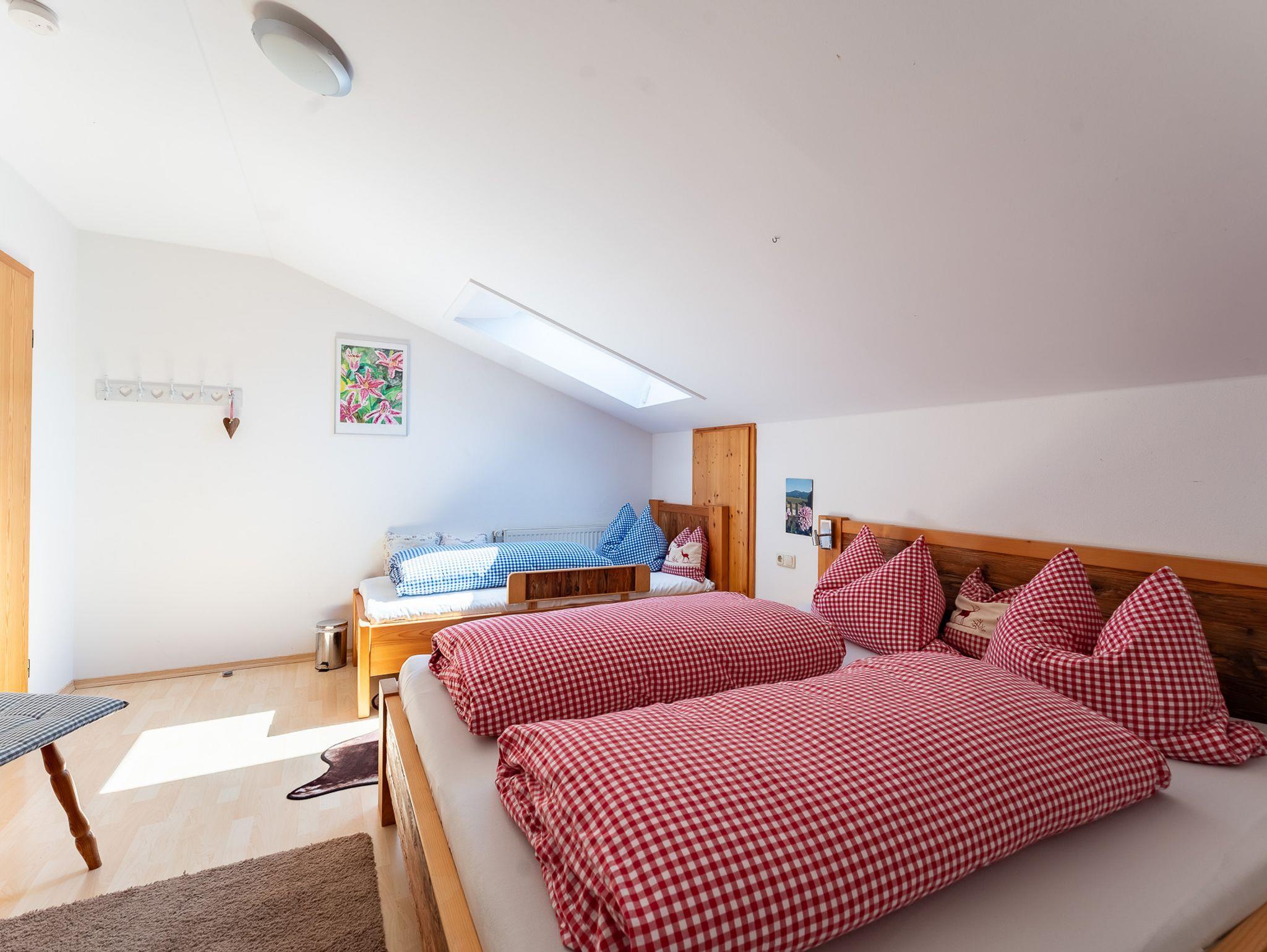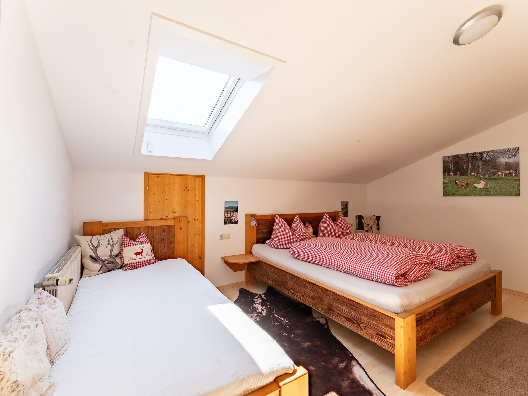 5 Räume, davon 2 separat gelegene Schlafräume, 5 Betten, 1 Schlafcouch.Genießen Sie traumhafte Urlaubstage in unserer geräumigen Ferienwohnung Feichteck mit komfortabler Ausstattung.Die Wohnung hat einen eigenen Eingang, eine gemütliche Wohnküche sowie 2 separate Schlafzimmer mit Balkon und herrlichem Bergblick! Weitere Details zur Wohnung finden sie unter den Ausstattungsmerkmalen.Jeden Morgen (außer sonntags) kommt der Bäcker zum Hof.Haustiere in der Wohnung pro Tag 8 Euro (nur nach Absprache möglich!)Es würde uns freuen, Sie als Gast bei uns auf dem Adlerhof begrüßen zu dürfen. Ihre Familie Stuffer - - KURZURLAUBER AUFGEPASST: Bei einem Kurzaufenthalt unter 4 Nächten verlangen wir einmalig einen Zuschlag von 80,- Euro