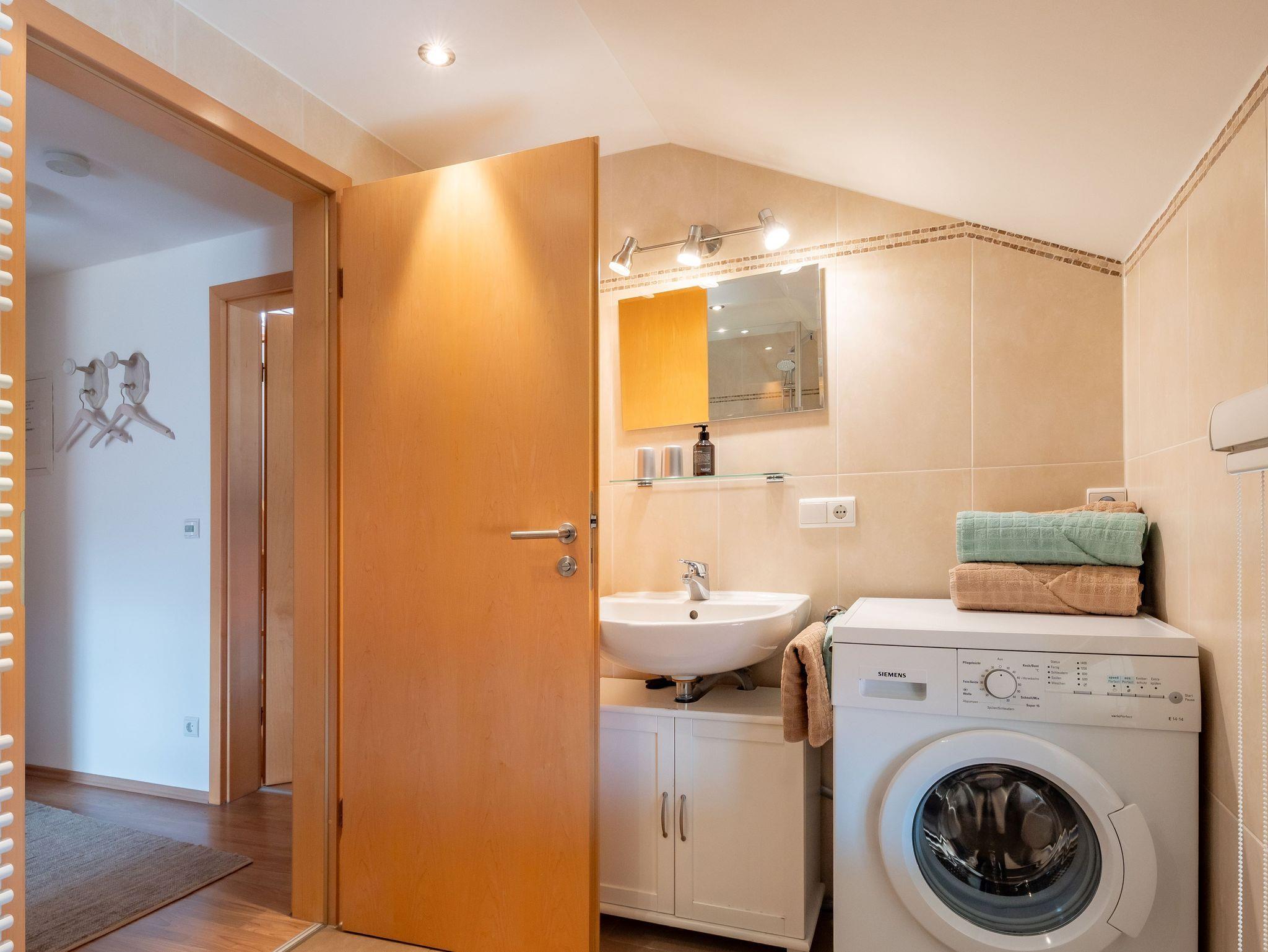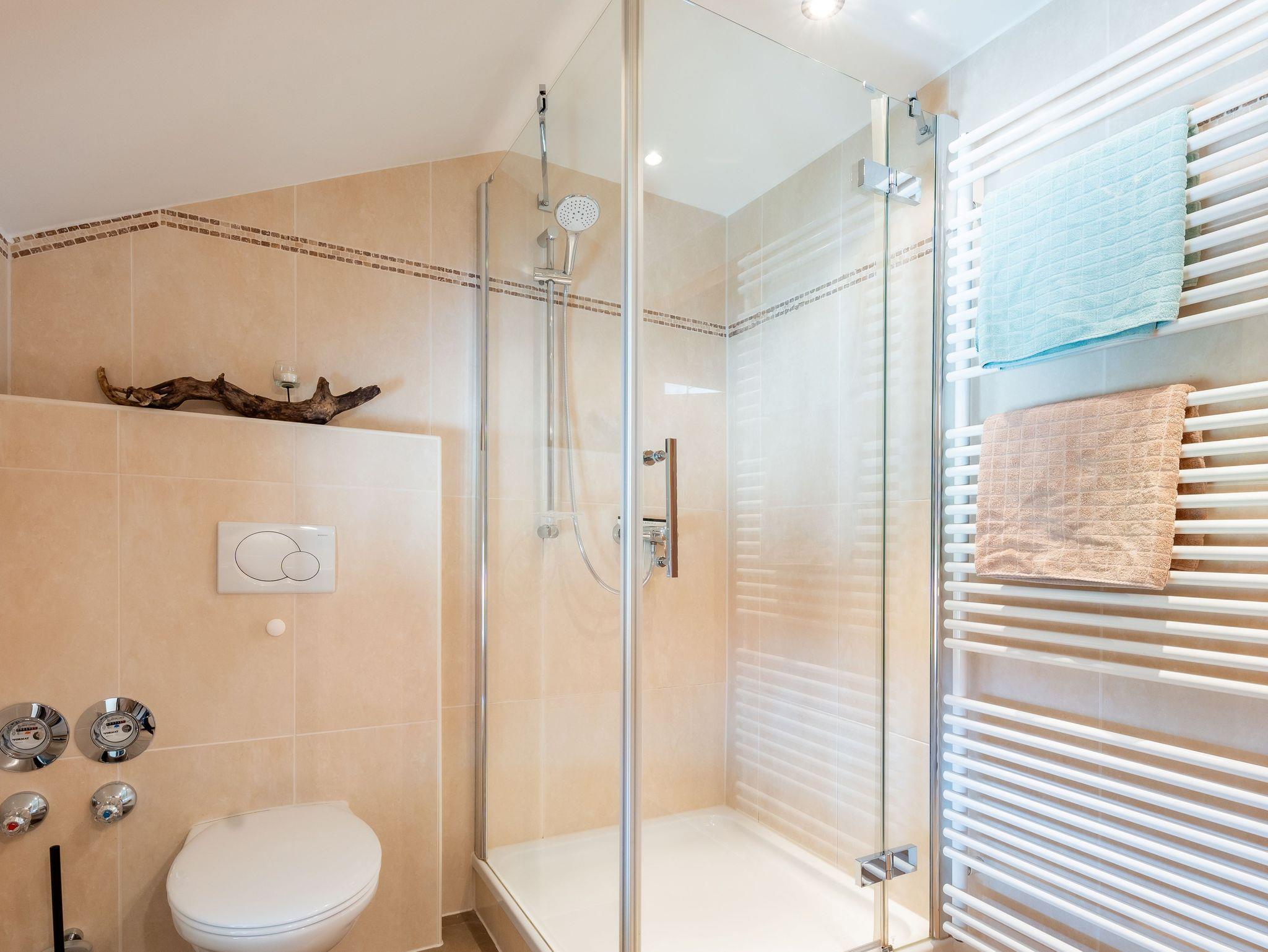 Diese moderne Dachgeschosswohnung in unserem Bauernhaus steht Ihnen für bis zu fünf Personen zur Verfügung. Ein großes Schlafzimmer mit Galerie ist mit einem Doppelbett und drei weiteren Schlafmöglichkeiten ausgestattet. Gefrühstückt wird an dem Holztisch im Wohnraum, in dem sich auch die Küchenzeile mit Kochherd, Ofen, Kaffeemaschine, Wasserkocher, Kühlschrank und Geschirrspülmaschine befindet. Für einen gemütlichen Abend sorgt die große Couch, die ausgezogen zu einem Bett umfunktioniert werden kann, oder Sie verbringen den lauen Sommerabend auf dem zur Bergseite ausgerichteten Balkon. Das Bad ist mit einer Dusche und einer Waschmaschine ausgestattet.