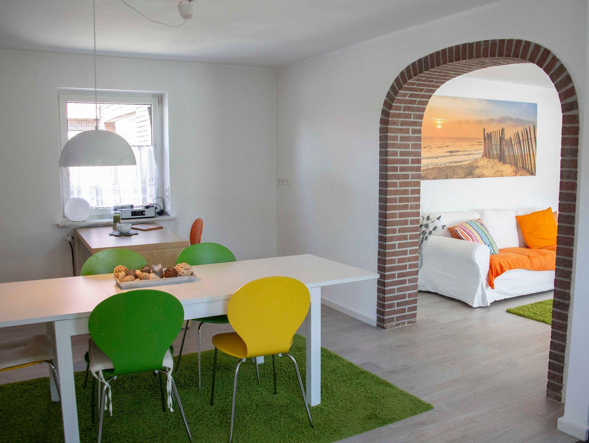 In unserem kleinen Haus in dörflicher, ruhiger Lage mit Nähe zum Deich finden Sie 2 Ferienwohnungen. Zwei Stellplätze am Haus, ein großer Garten mit zwei überdachten Sitzplätzen und altem Obstbaumbestand sind bei diesen schönen Ferienwohnungen Besonderheiten, die im Preis mit inbegriffen sind.