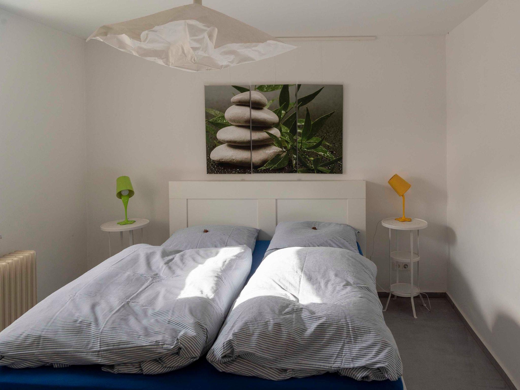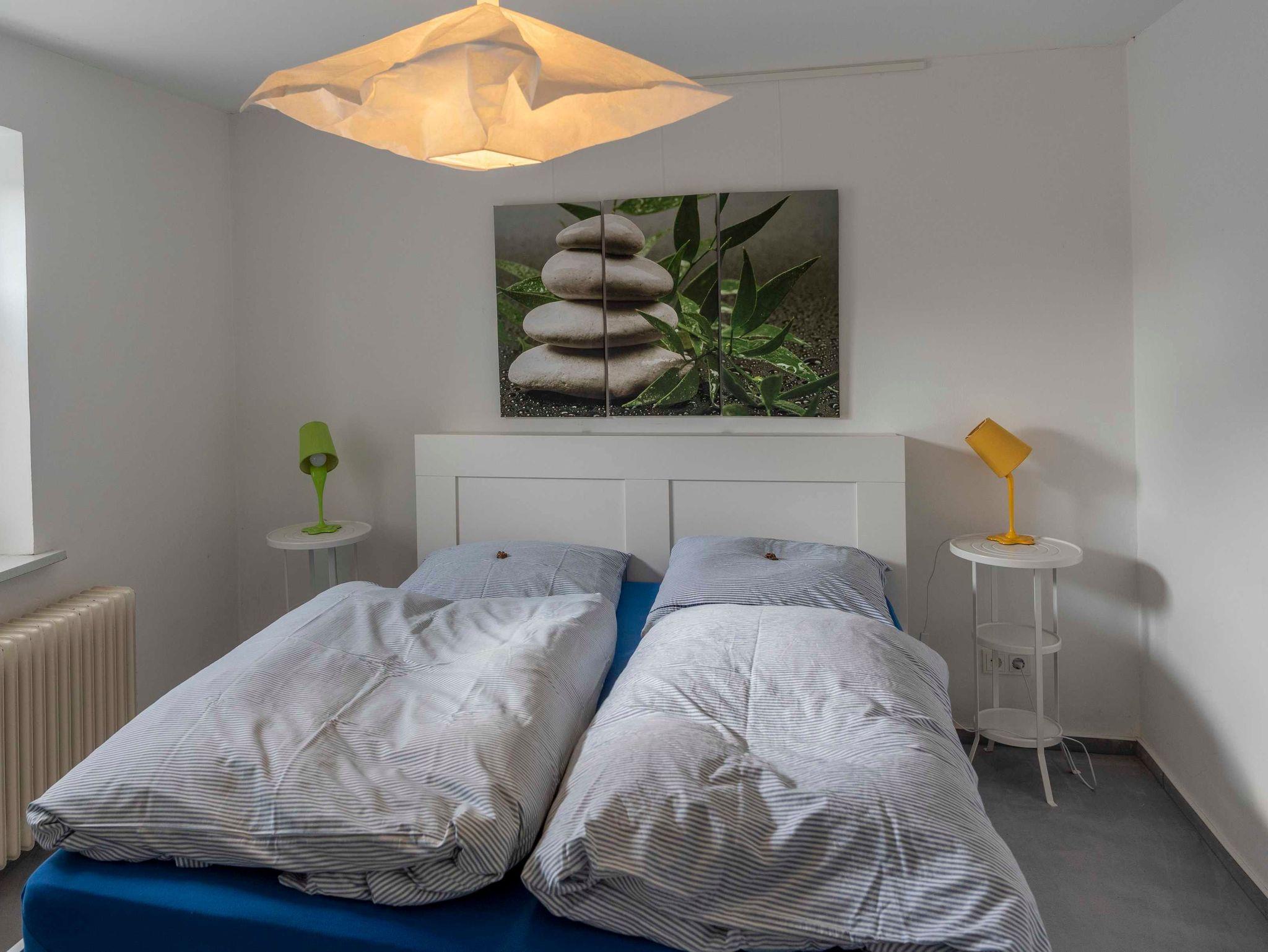 Die 70qm große Ferienwohnung ist für 1-4 Personen ausgelegt und befindet sich im Erdgeschoß. Der Eingang ist rechts am Haus, von der Straße aus gesehen. Die Wohnung wurde mit einer Fußbodenerwärmung ausgestattet, die in der kühleren Jahreszeit eine sehr angenehme Wärme bietet. Sie verfügt über einen großen, offenen Wohn-, und Kochbereich, ein Schlafzimmer, ein Bad und Flur sowie einen Garten mit überdachter Terrasse.