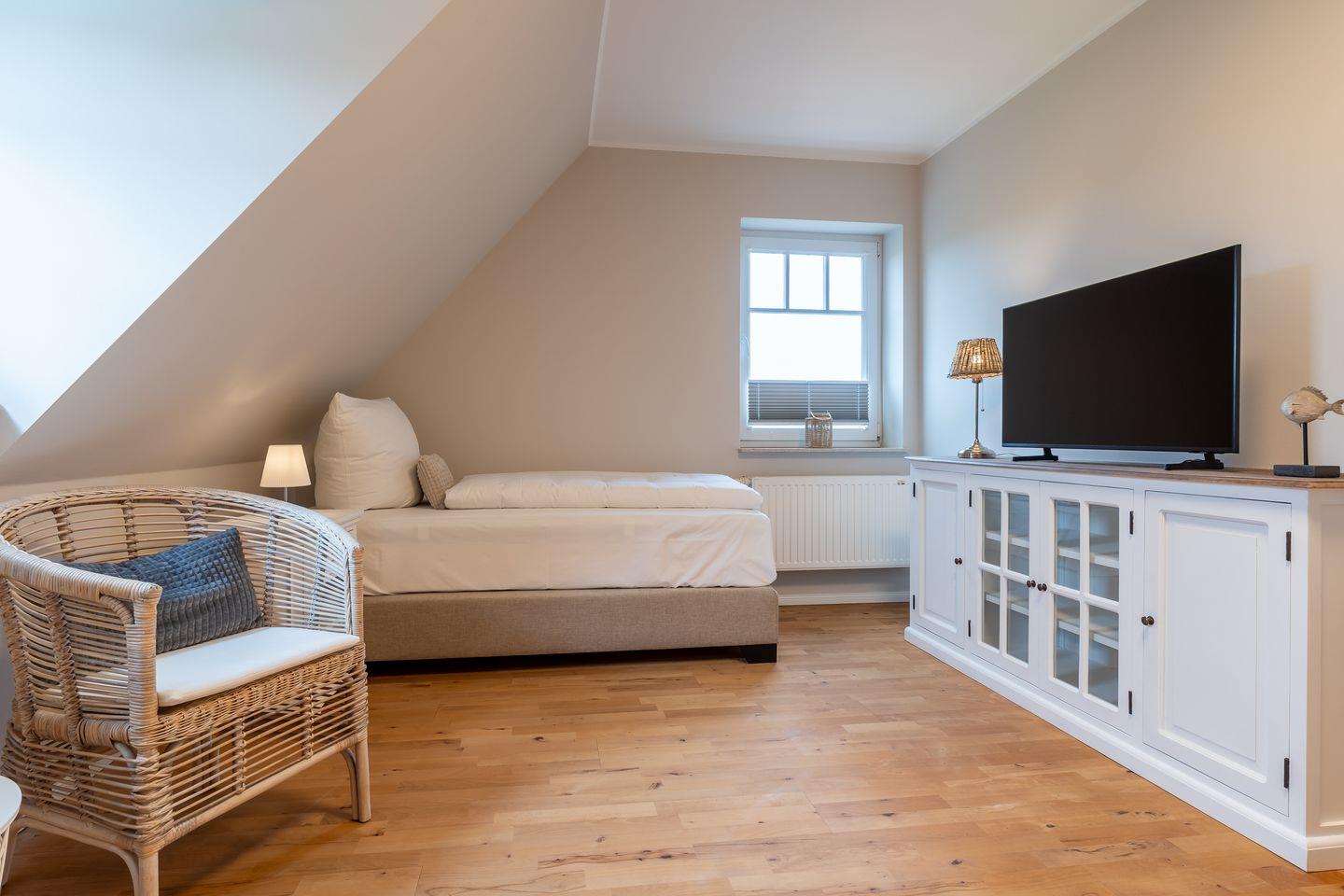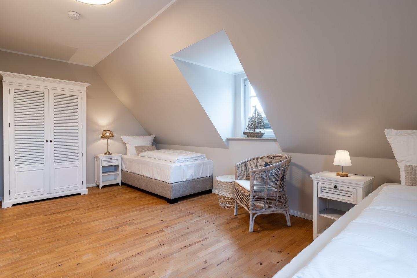 Drei geschmackvoll eingerichtete Schlafzimmer, die im Obergeschoss liegen, bieten Ihnen die Rückzugsmöglichkeit, die Sie nach einem erfüllten Tag an der frischen Luft benötigen. Jedes Schlafzimmer ist darauf ausgelegt, höchste Gemütlichkeit zu bieten und lädt dazu ein, die Seele baumeln zu lassen. Zwei moderne Badezimmer mit Dusche sorgen für zusätzlichen Komfort und ermöglichen Ihnen ein entspanntes Starten in den Tag.