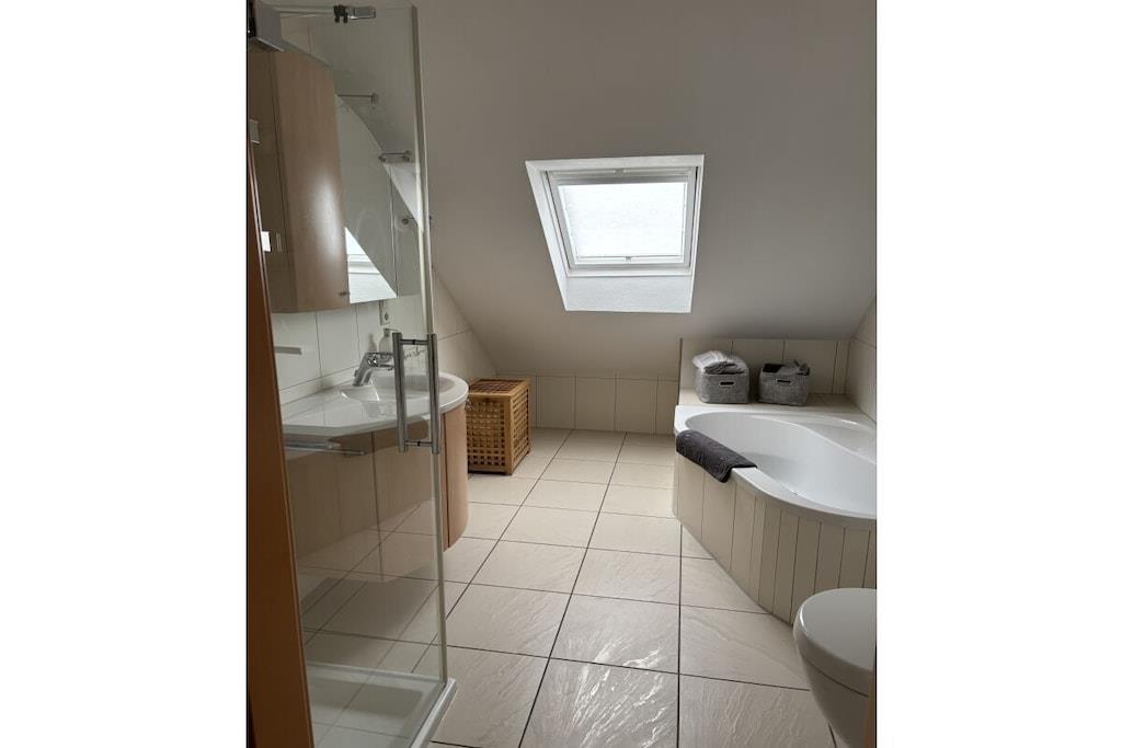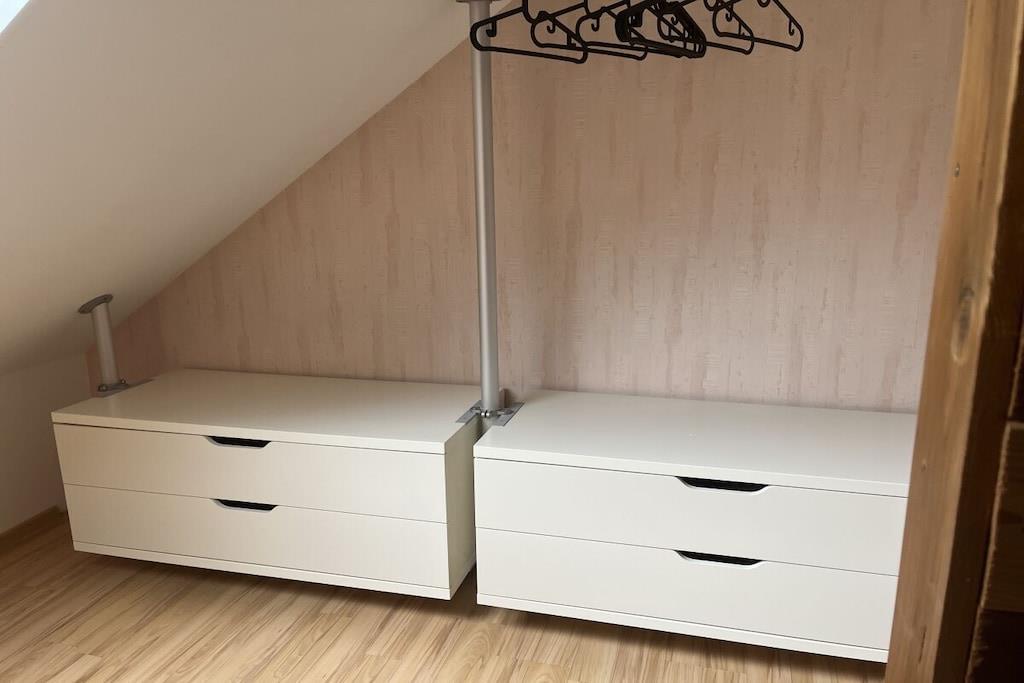 Die frisch renovierte Dachgeschosswohnung bietet ihnen Platz für bis zu 5 Personen und hat eine gut ausgestattete Küche mit einem Esstisch. Im Wohnzimmer befindet sich ein Kaminofen und eine gemütliche Leseecke. Das Badezimmer hat eine Badewannen und eine Dusche. Die Küche und das Badezimmer sind mit Fußbodenheizung ausgestattet. Im oberen Bereich von der Wohnung befindet sich ein weiteres Schlafzimmer mit einem Doppelbett und einem Einzelbett. Das untere Schlafzimmer mit einem Doppelbett grenzt an das Wohnzimmer. Parkplätze sind im Hof vorhanden. Das neu aufgestellte Gartenhaus mit überdachten Sitzmöglichkeiten kann zum unterbringen ihrer Fahrräder genutzt werden. Hier können sie auch beim Grillen und einem Glas Wein die Zeit verbringen.