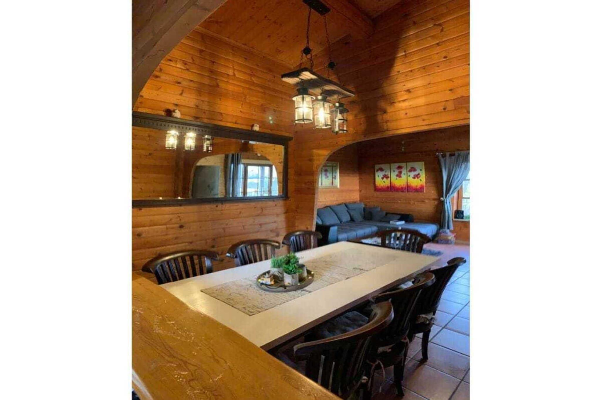 Stueetage: (entre(, , varme), Stue(, enkeltsovesofa, Fjernsyn, pejs, varme), spisestue(spisebord, varme), Køkken(kogeplade, ovn, opvaskemaskine , køleskab), soveværelse(, , dobbeltseng, Fjernsyn, tremmeseng), soveværelse(, , dobbeltseng), badeværelse(, toilet, badekar, bruser, håndvask), badeværelse(, toilet, bruser, håndvask)) Kælderetage: (soveværelse(, , dobbeltseng, Fjernsyn)) , , , loungerum(sauna), Internetadgang, Internetadgang, balkon(, havemøbler, solstole), tørreskab