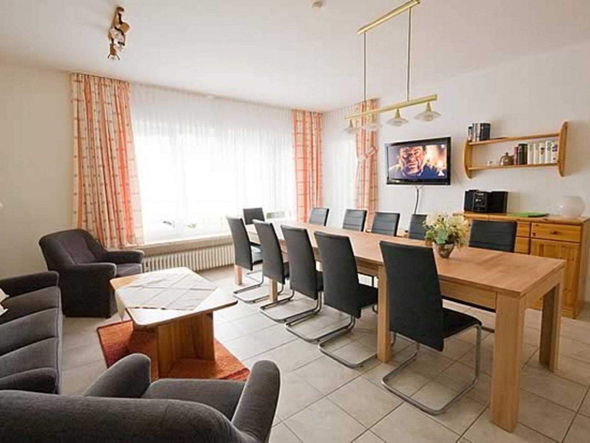 Diese Wohnung wird gerne als Mittelpunkt für gemeinsame Mahlzeiten genutzt und kann im Essbereich für 10-14 Personen ausgestattet werden. Dies wird gerne von Gästen genutzt, die mehrere Wohnungen für einen Familien- oder Freundeskreis im gleichen Haus buchen möchten.