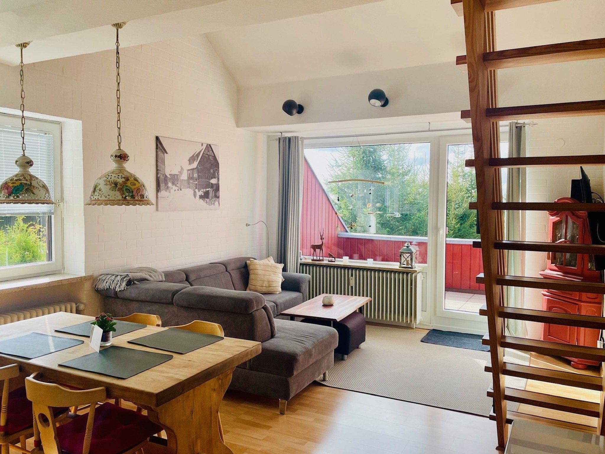 Die große, helle Ferienwohnung Lenas Loft befindet sich im 1. Obergeschoß einer ruhig gelegenen Wohnanlage in einer Seitenstrasse am Waldrand. Die Nichtraucherwohnung wurde im April 2021 renoviert.