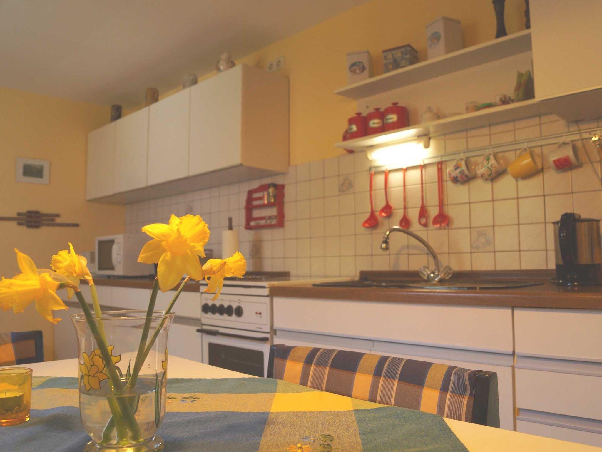 Radio, CD-Player, DVD-Player und Sat-TV gehören zur Ausstattung dazu. Als besonderes Highlight steht im Wohnzimmer eine Heimorgel, die selbstverständlich auch genutzt werden darf. Des Weiteren ist eine komplett ausgestattete Küche mit Essplatz vorhanden. Neben Kaffeemaschine, Brotschneidemaschine, Wasserkocher stehen auch Mikrowelle und eine Caffissimo Kapselkaffeemaschine zur Verfügung.