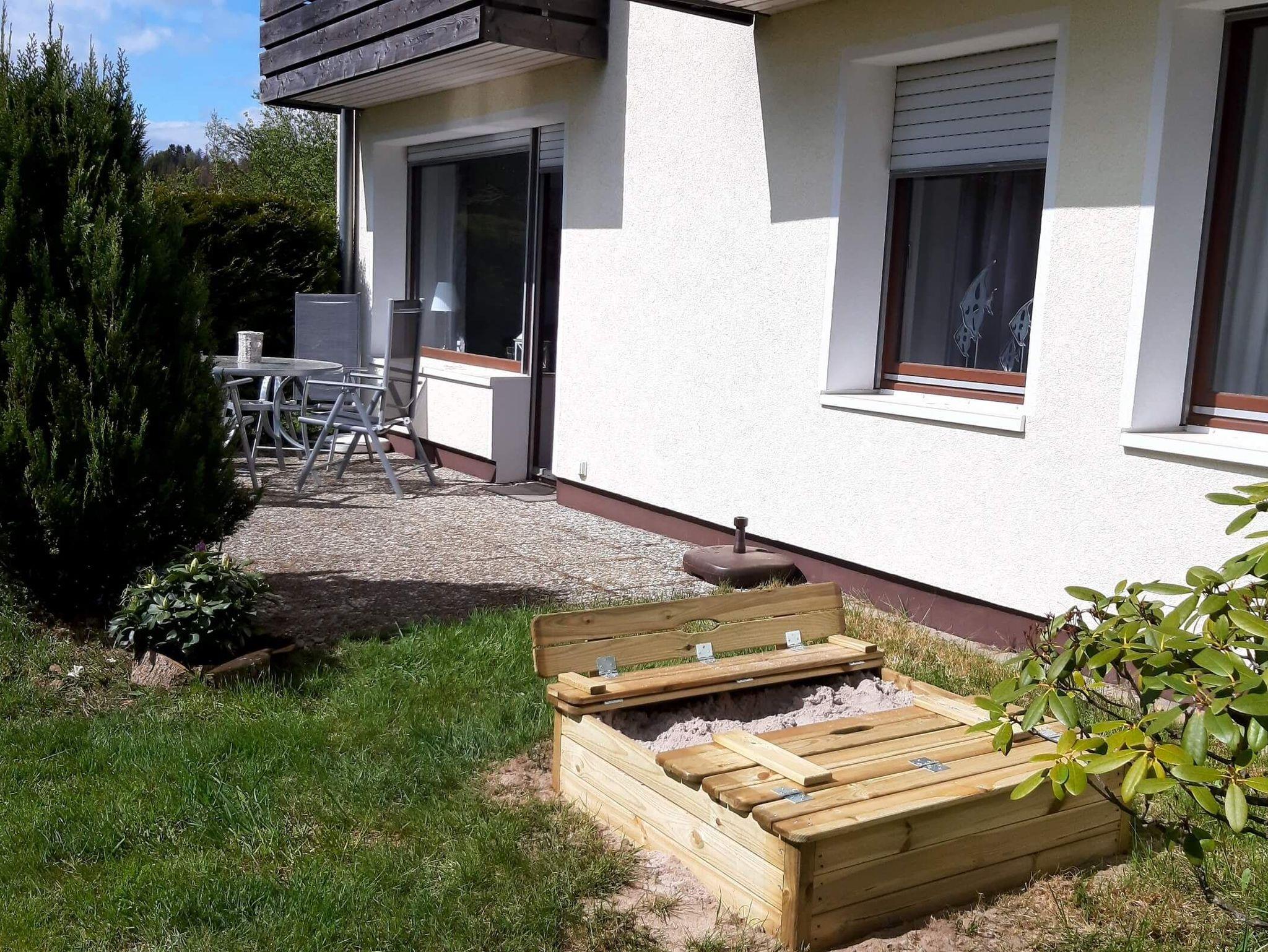 Die Terrasse ist nach Süden ausgerichtet mit großem Garten und Sandkasten für die kleinen Gäste. Bequeme Gartenmöbel, Liegen und Grill stehen zur Verfügung. Ein zugewiesener Parkplatz befindet sich direkt vor dem Haus.
