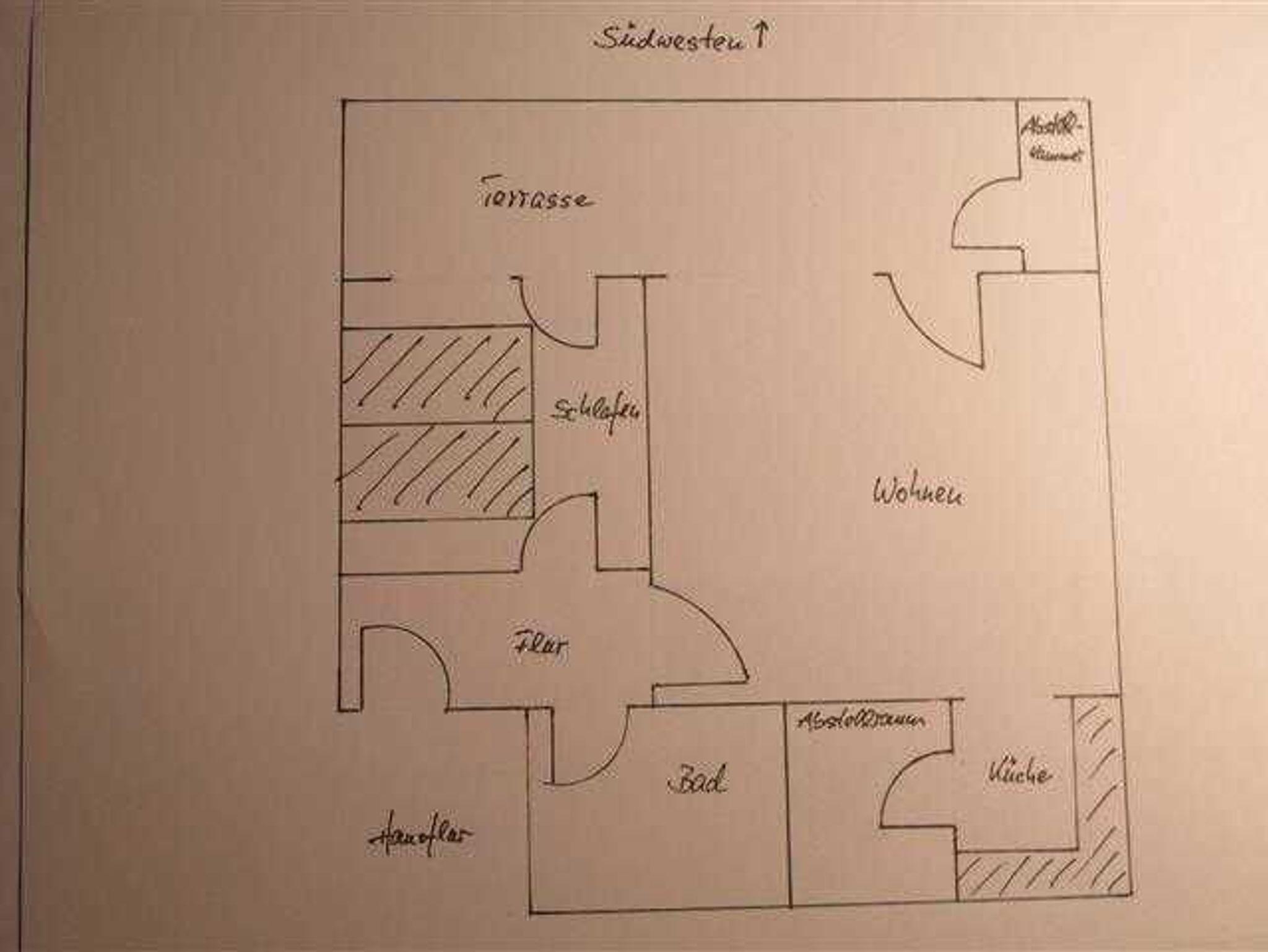 Die Ferienwohnung Schwalbenglück in St. Andreasberg im Oberharz bietet auf 66qm Wohnfläche Platz bis zu 3 Personen. Das Schlafzimmer ist mit einem Doppelbett (2x2m) und Laminat ausgestattet. Im Wohnzimmer, welches im nordischen Stil mit geölten Eichenmöbeln eingerichtet ist, befindet sich eine Schlafcouch mit Lattenrost (1,30x2,00m). Die Wohnung ist ebenerdig gelegen und vor dem Wohnzimmer und Schlafzimmer erstreckt sich eine teilweise überdachte Terrasse. Auf der Terrasse ist eine Abstellkammer. Die Ausrichtung der Wohnung ist Süd-West.