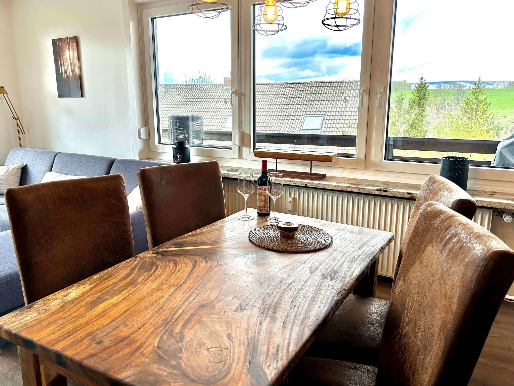 Entdecken Sie die perfekte Auszeit in unserer charmanten Ferienwohnung Abendsegler in Sankt Andreasberg, mitten im malerischen Harz. Diese 60 Quadratmeter große Wohnung bietet Platz für bis zu 5 Gäste und ist mit einem gemütlichen Schlafzimmer mit Doppelbett, einem Schlafzimmer mit einem Einzelbett und einem modernen Badezimmer ausgestattet. Genießen Sie die Ruhe und den Komfort unseres liebevoll eingerichteten Wohnbereichs mit einem Schlafsofa, auf dem 2 Personen schlafen können, einem Fernseher und einem stilvollen Essbereich. Der Elektrokamin sorgt ebenfalls für gemütliche Stunden. Die große Fensterfront sorgt für viel natürliches Licht und einen wundervollen Blick ins Grüne.