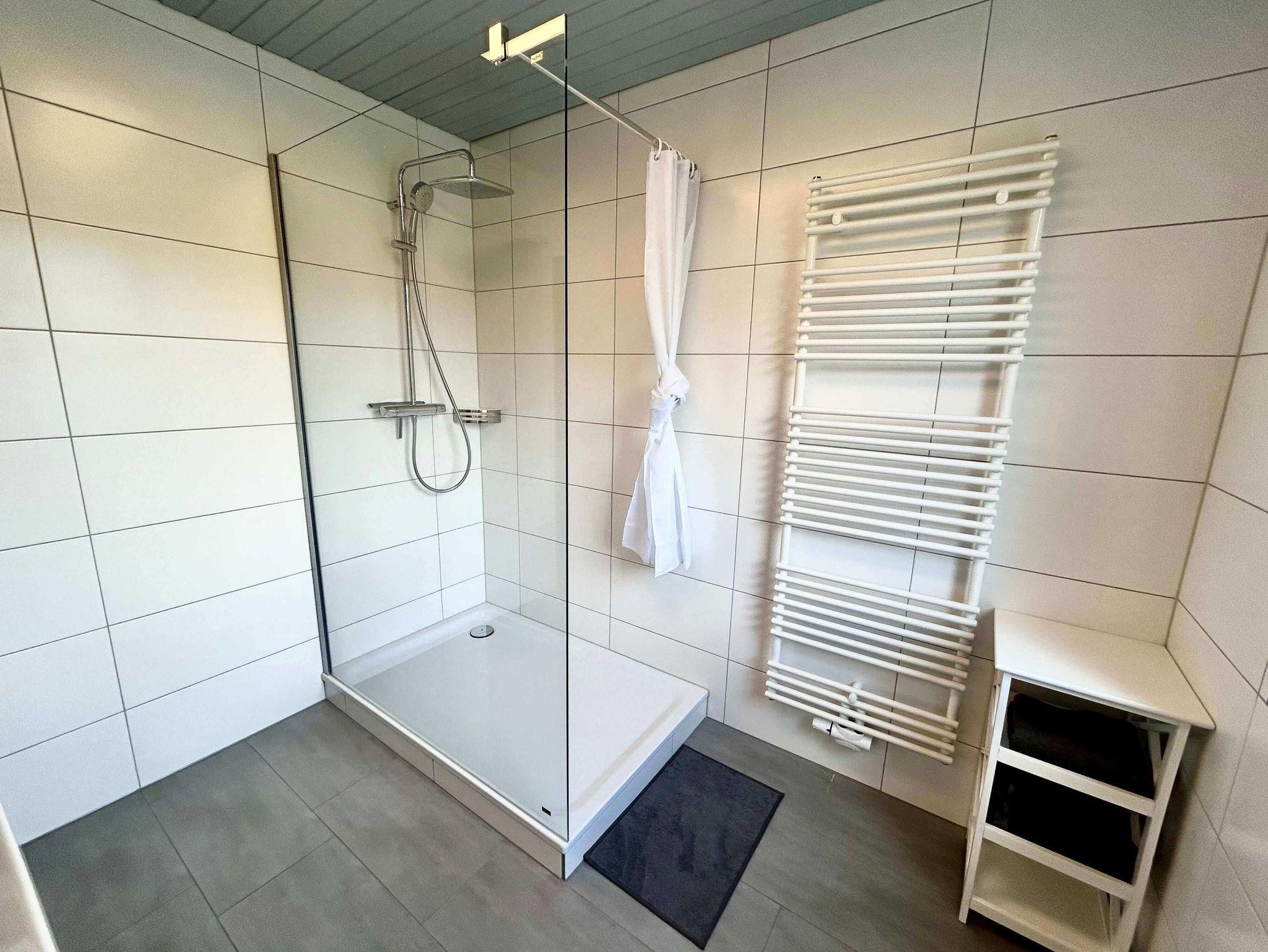 Die voll ausgestattete Küchenzeile mit Geschirrspüler, Kaffeemaschine und Wasserkocher lädt dazu ein, köstliche Mahlzeiten zu zaubern, die Sie auf dem einladenden Balkon mit Blick auf die malerische Umgebung genießen können. Ein besonderes Highlight ist das moderne Badezimmer, das mit einer modernen Dusche ausgestattet ist.