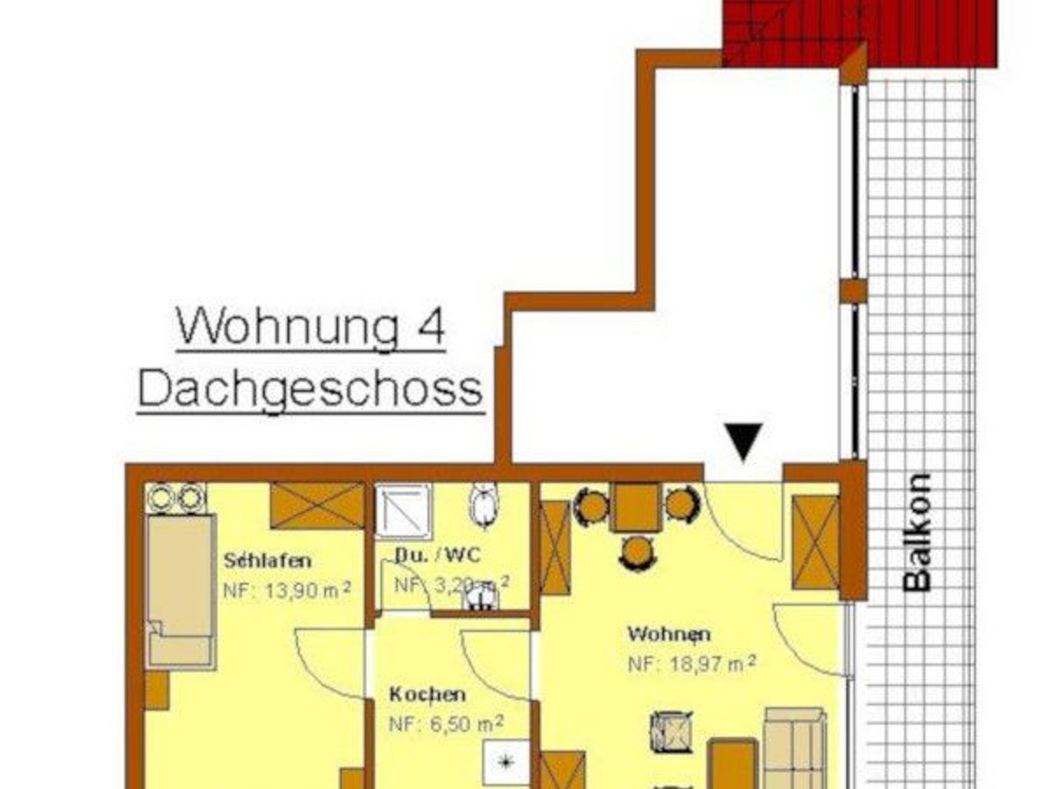 Die Ferienwohnung Margerite im Haus Jasmin in St. Andreasberg im Oberharz liegt im Dachgeschoss des Hauses und bietet auf einer Wohnfläche von 42 qm Platz für zwei Personen.