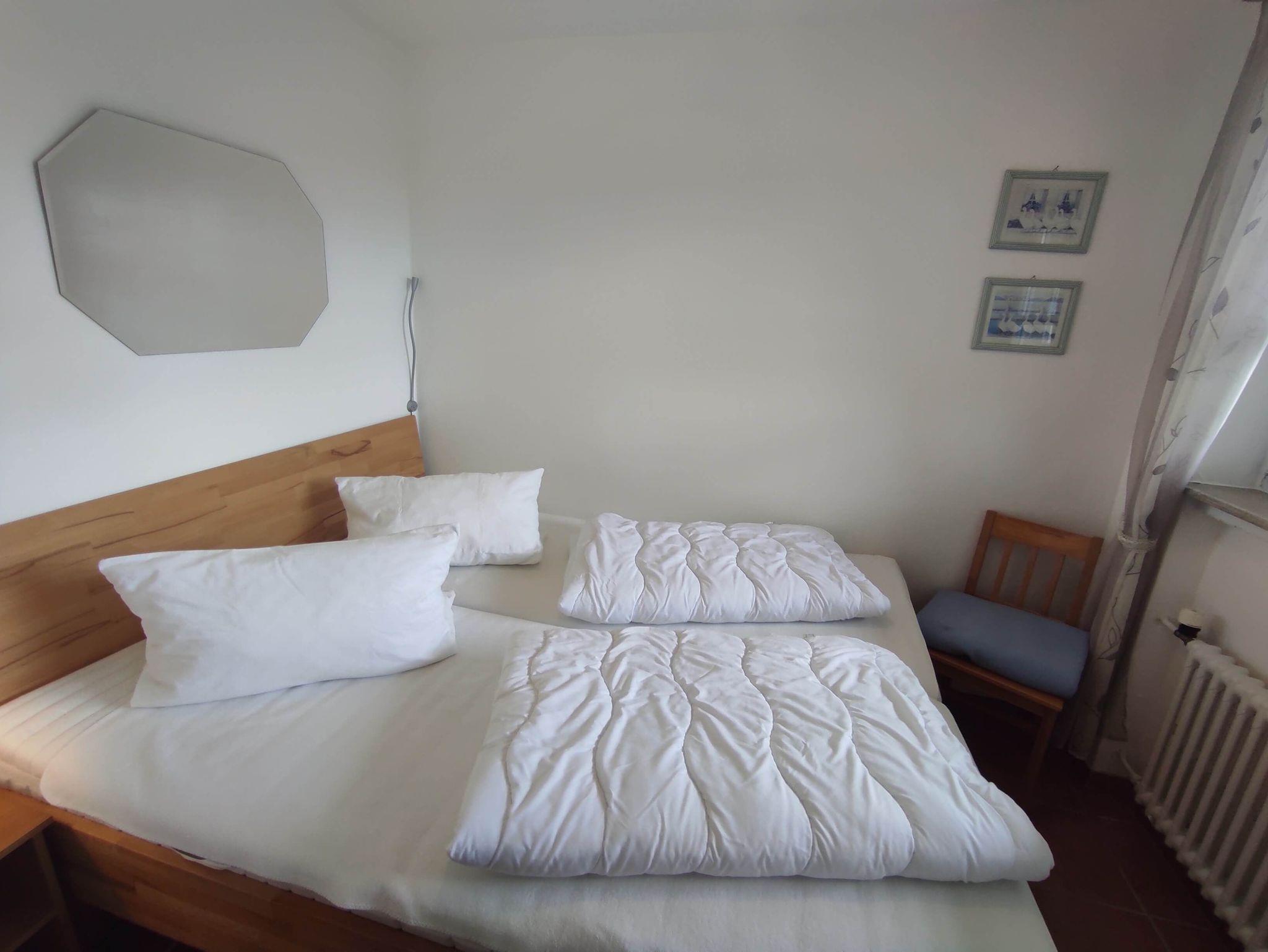 Diese frisch renovierte Ferienwohnung lädt zum Wohlfühlen ein. Sie besteht aus einem Schlafzimmer mit einem neuen Kuschelbett (180x200 cm) mit 2 Matratzen, einem Wohnzimmer mit Balkon, Sat-TV, Esstisch und Couch, einer separaten Küche und einem Bad mit Dusche. In der Wohnung finden Sie alles, was Sie für einen erholsamen Urlaub benötigen.