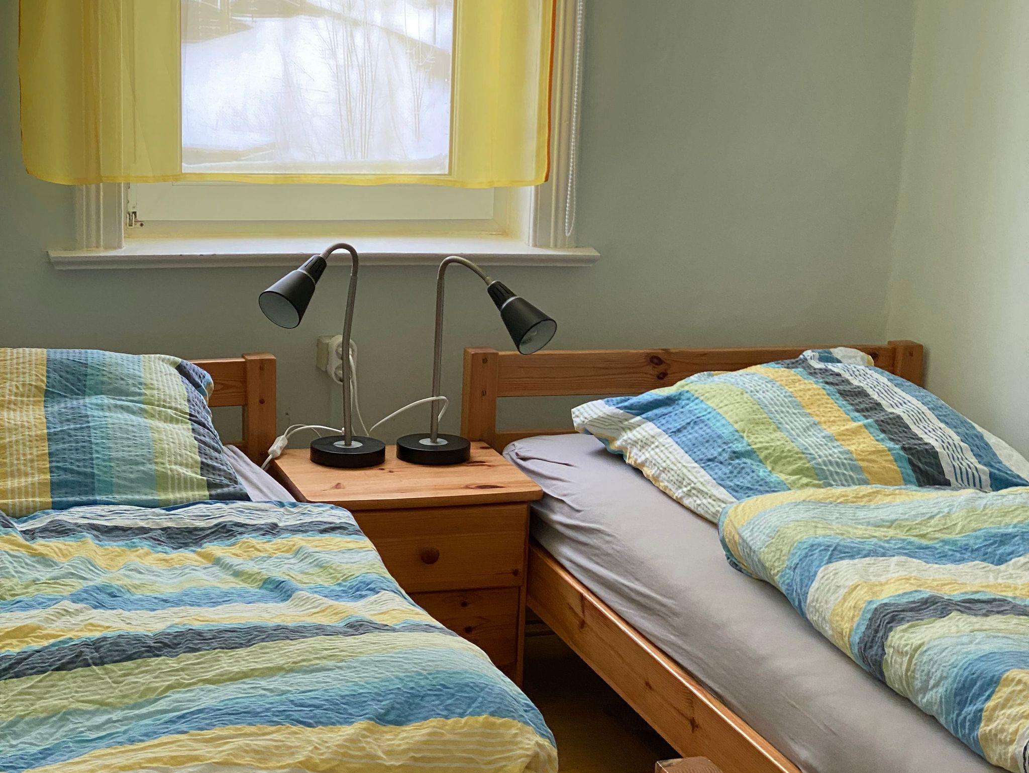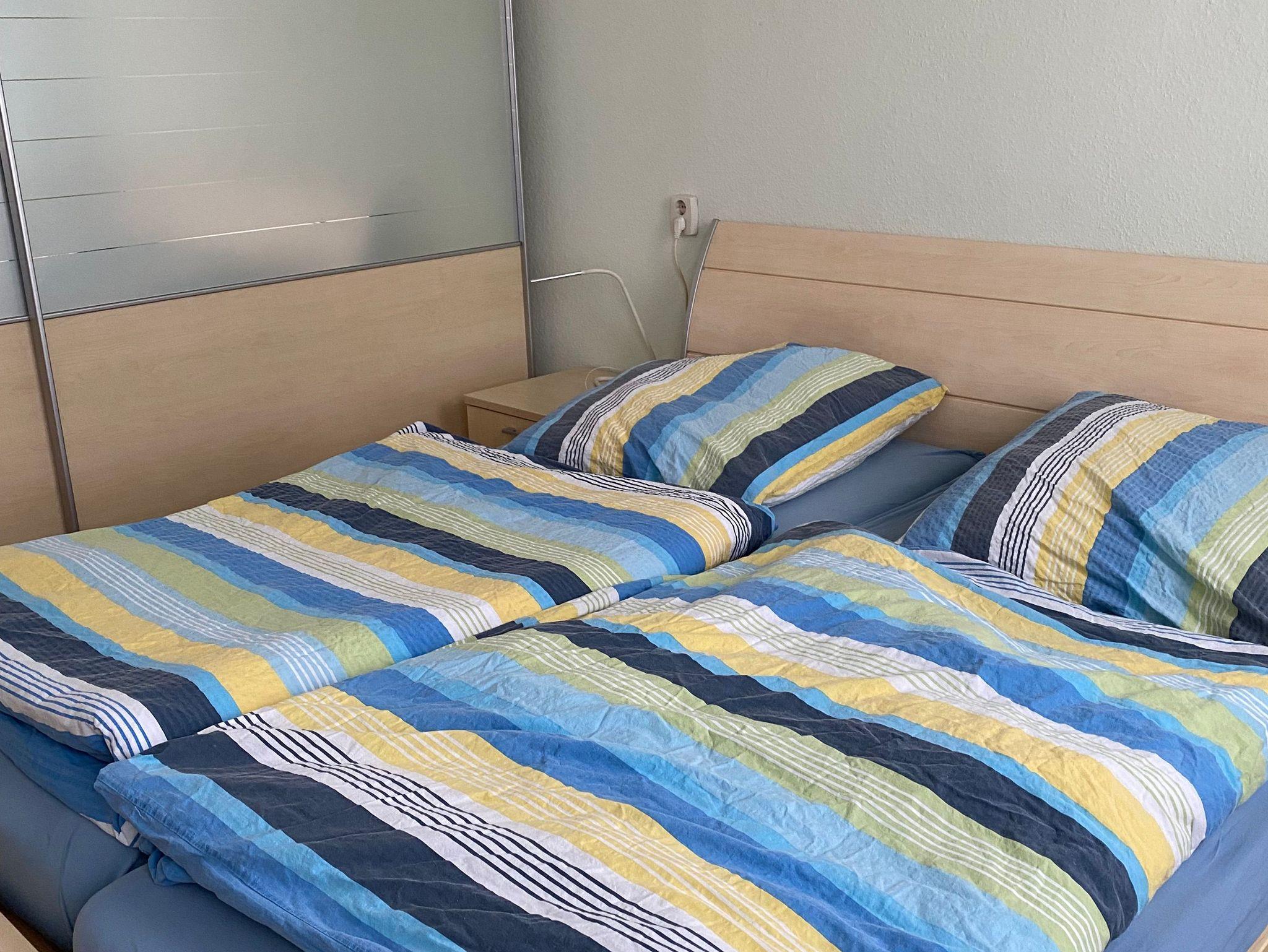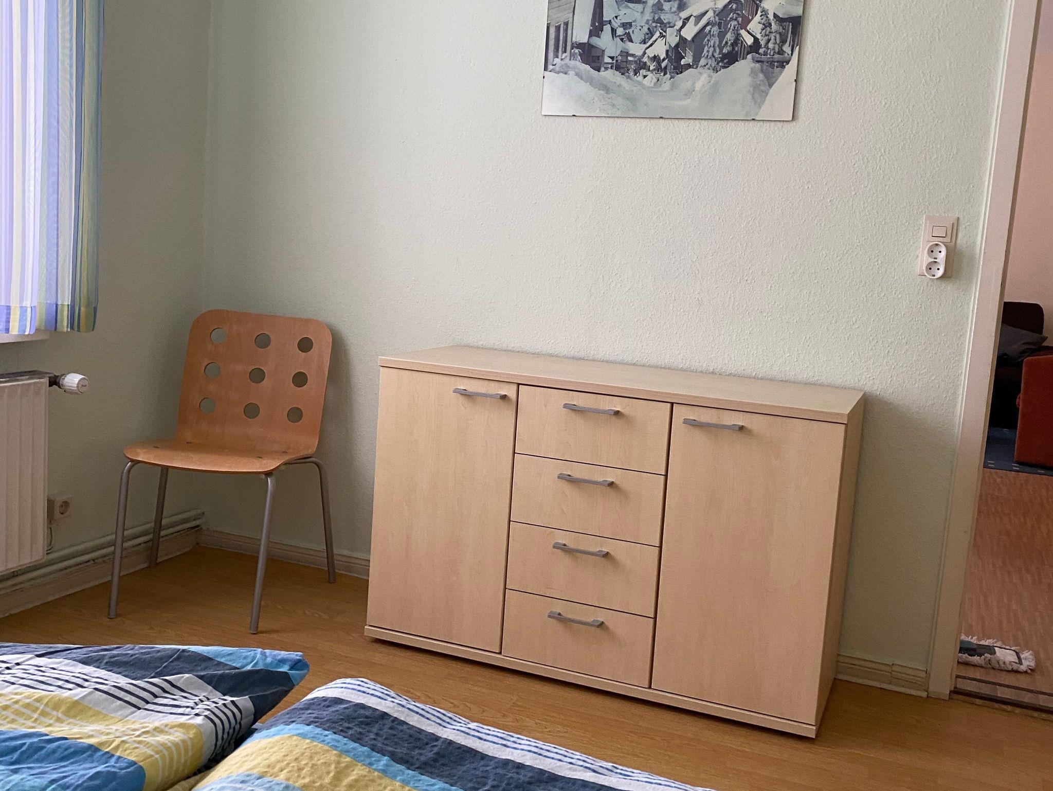 Das kleinere Schlafzimmer verfügt (ca. 11 qm) über zwei Betten, einen Schrank und eine Kommode.