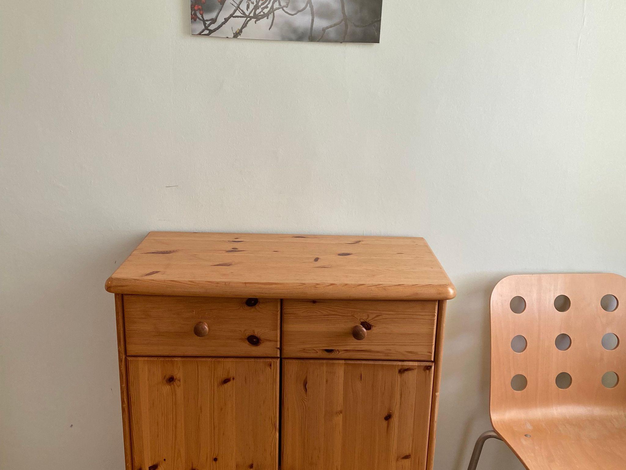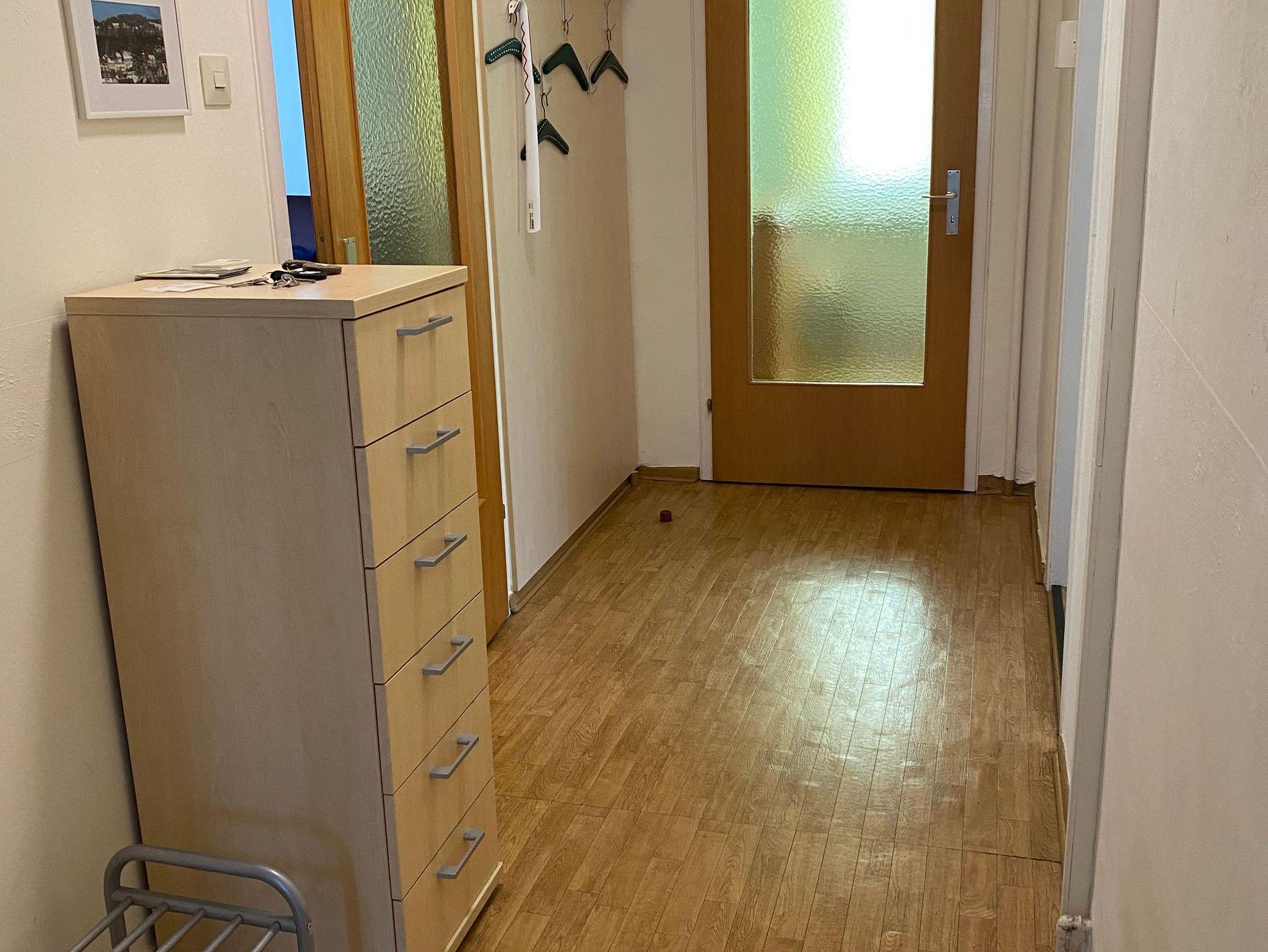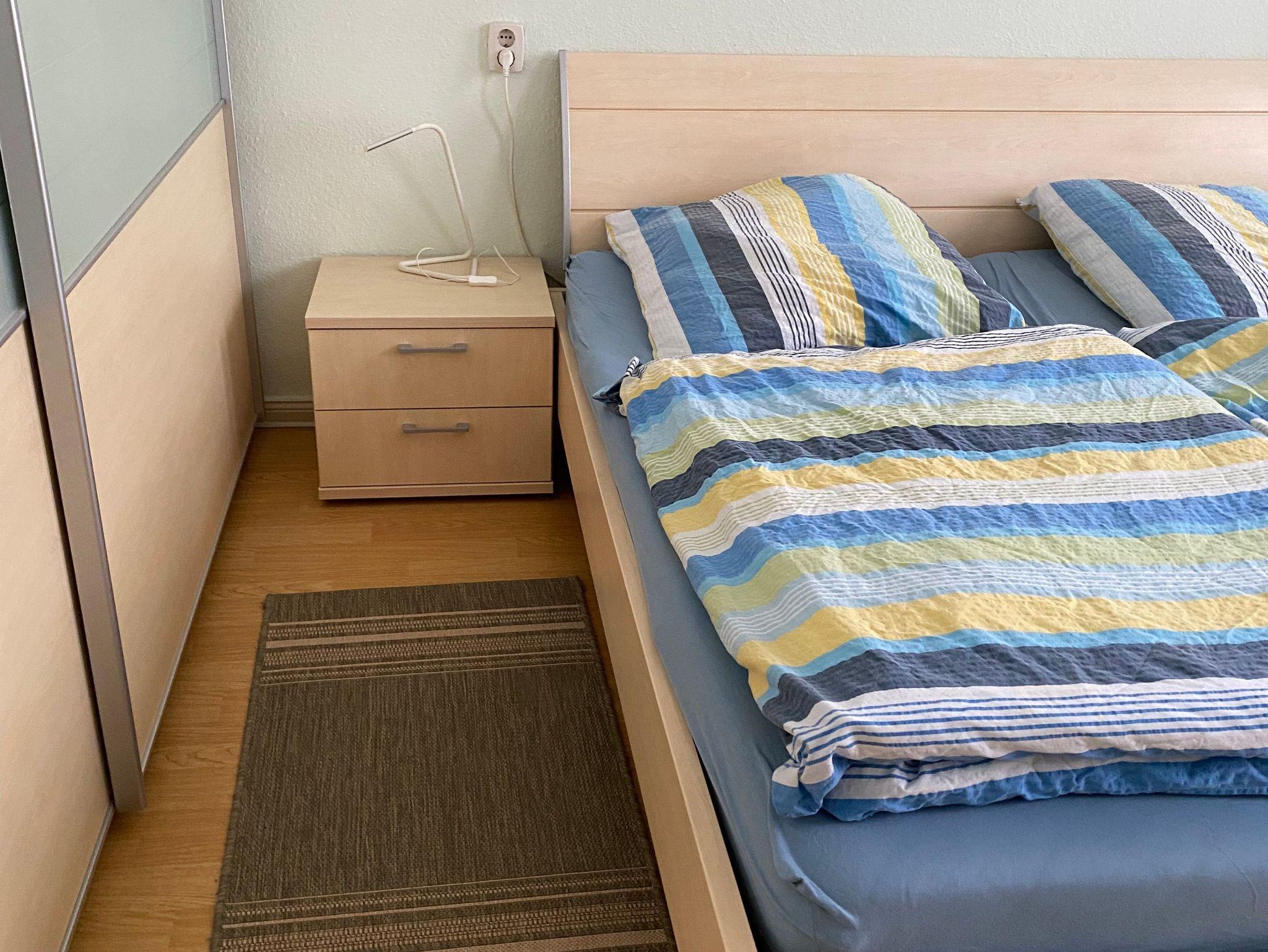 Das kleinere Schlafzimmer verfügt (ca. 11 qm) über zwei Betten, einen Schrank und eine Kommode.