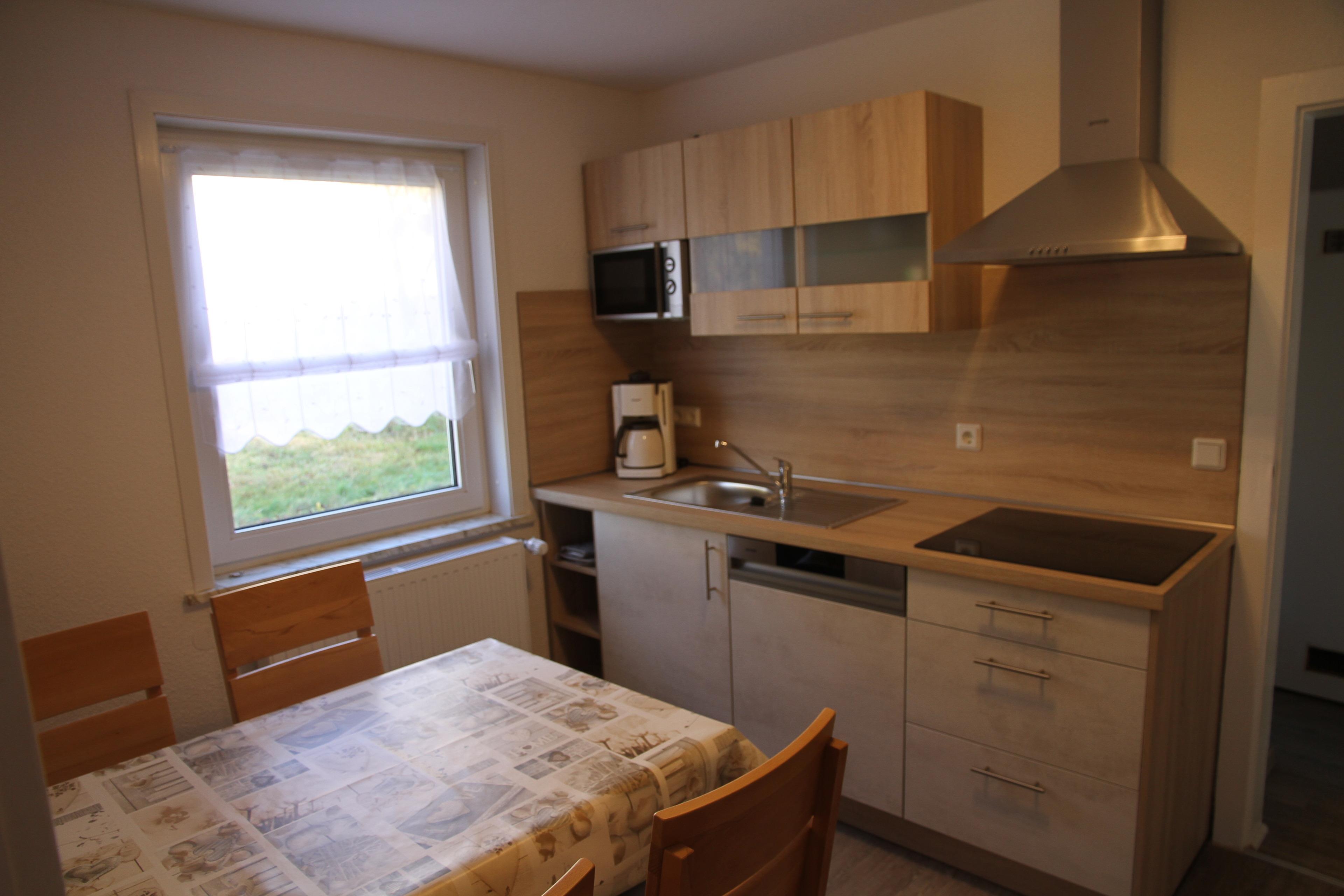 Es ist eine umfangreich ausgestattete Einbauküche vorhanden. Unter anderem gehören zum Inventar der Küche eine Spülmaschine, ein großer Kühlschrank mit Gefrierfach, ein Backofen, eine Mikrowelle, eine Kaffeemaschine (für Senseo-Pads und Filtertüten), ein Wasserkocher, ein Eierkocher, ein Toaster, eine Kaffeeisolierkanne u.a.