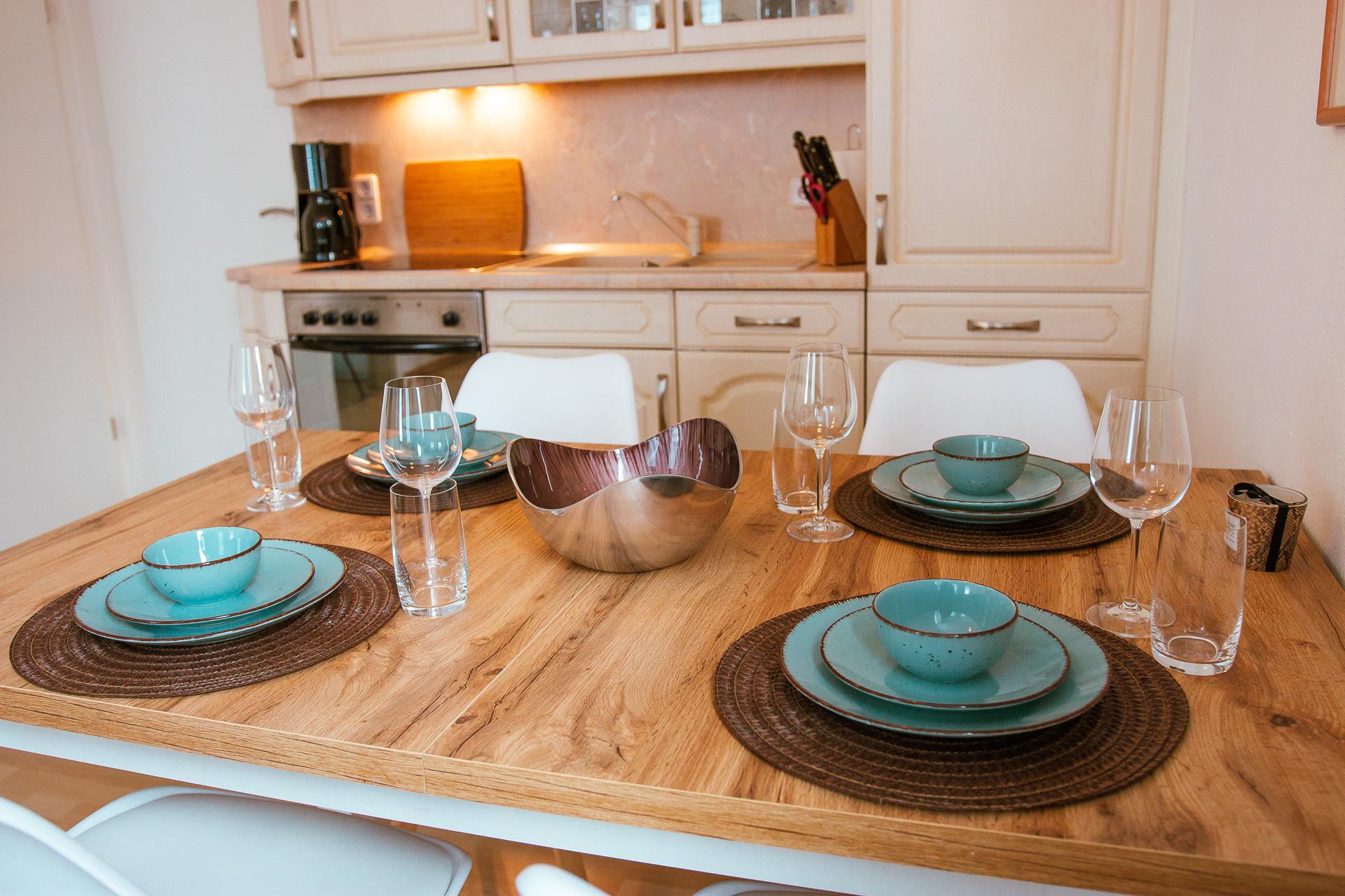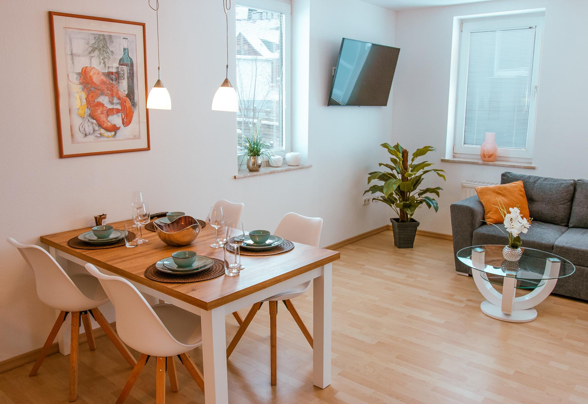 Liebevoll eingerichtete, gemütliche Ferienwohnung mit offener Wohnküche und Blick auf den Glockenturm in Sankt Andreasberg.