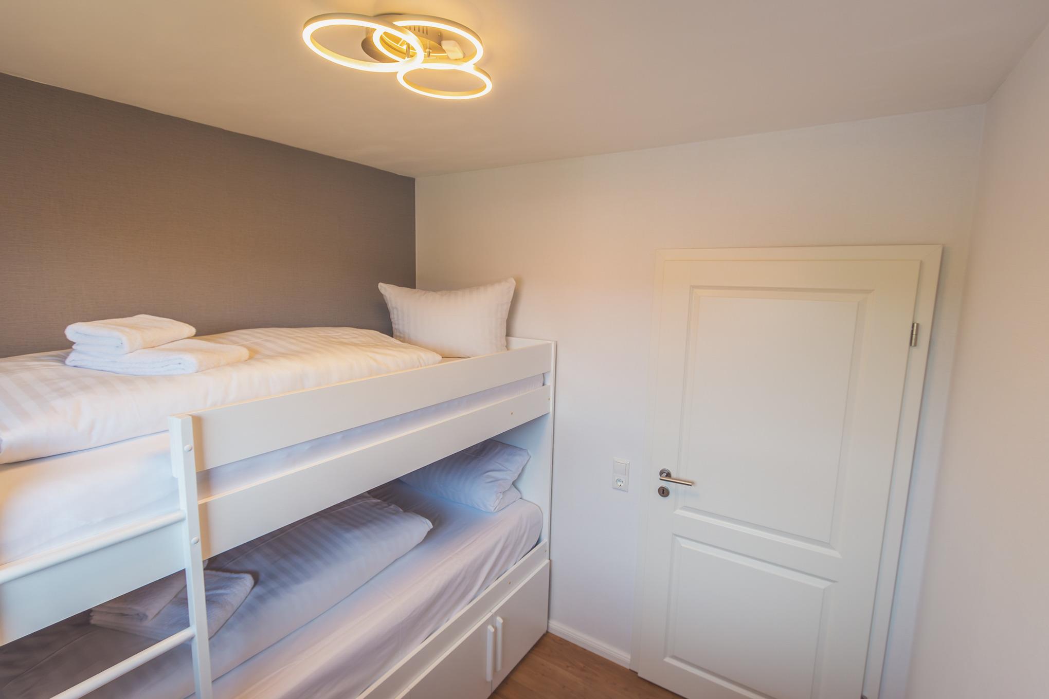Die "Harzblick" verfügt über zwei Schlafzimmer, ein Bad mit großer Dusche, einen großen Flur mit Garderobe, eine voll ausgestattete offene Küche und ein geräumiges Wohnzimmer. Im ersten Schlafzimmer gibt es ein komfortables Doppelbett, das für erholsame Nächte sorgt. Das zweite Schlafzimmer ist mit einem Etagenbett ausgestattet, was sie zu einer ausgezeichneten Wahl für Familien mit Kindern macht. Zusätzlich gibt es ein Schlafsofa im Wohnzimmer, das für zusätzliche Schlafmöglichkeiten genutzt werden kann.