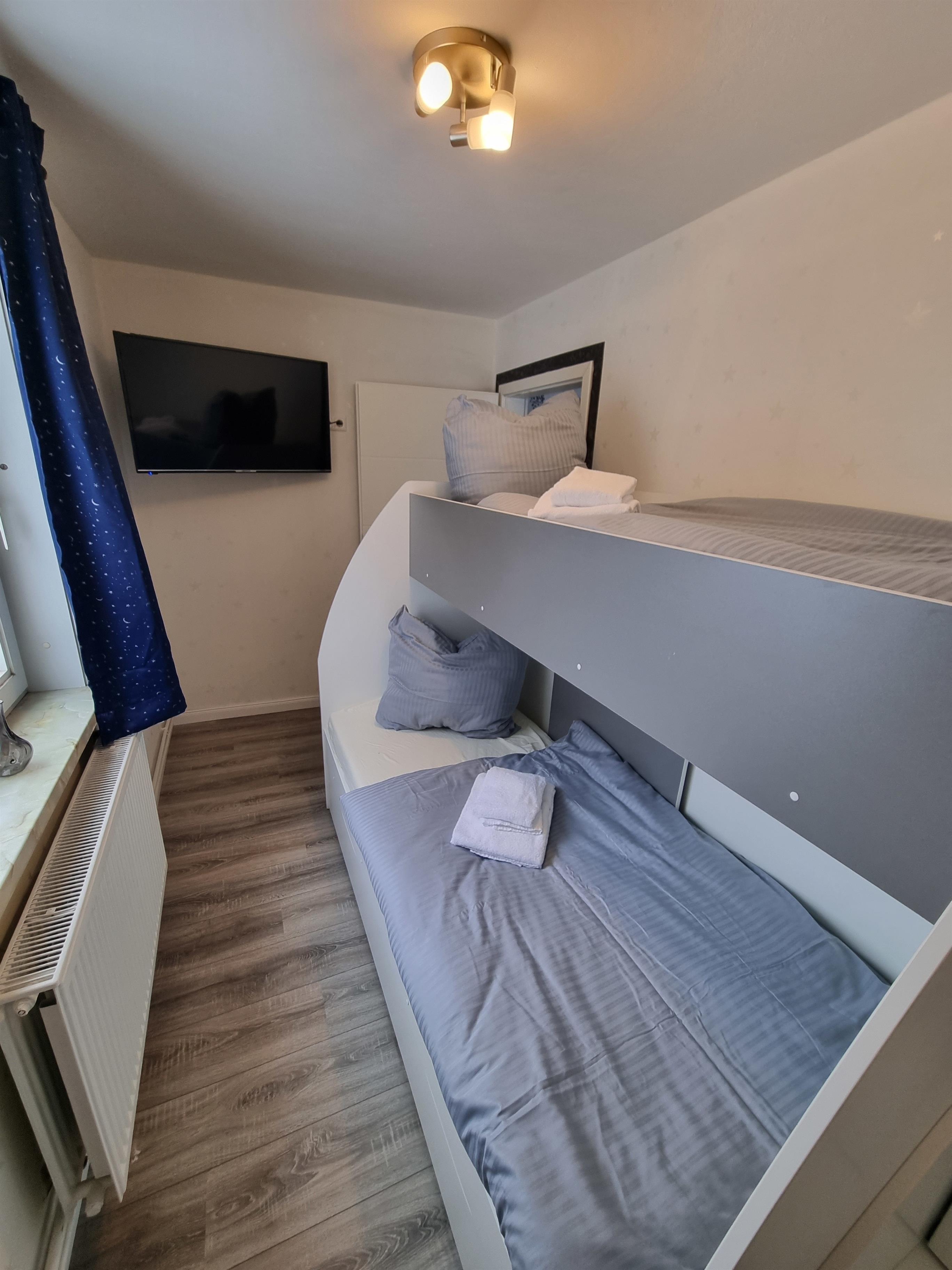 Mit 52m² besteht diese aus 1 Schlafzimmern mit Doppelbett ( 180×200), Kinderzimmer mit Hochbett, Wohnzimmer, Küche und Duschbad.