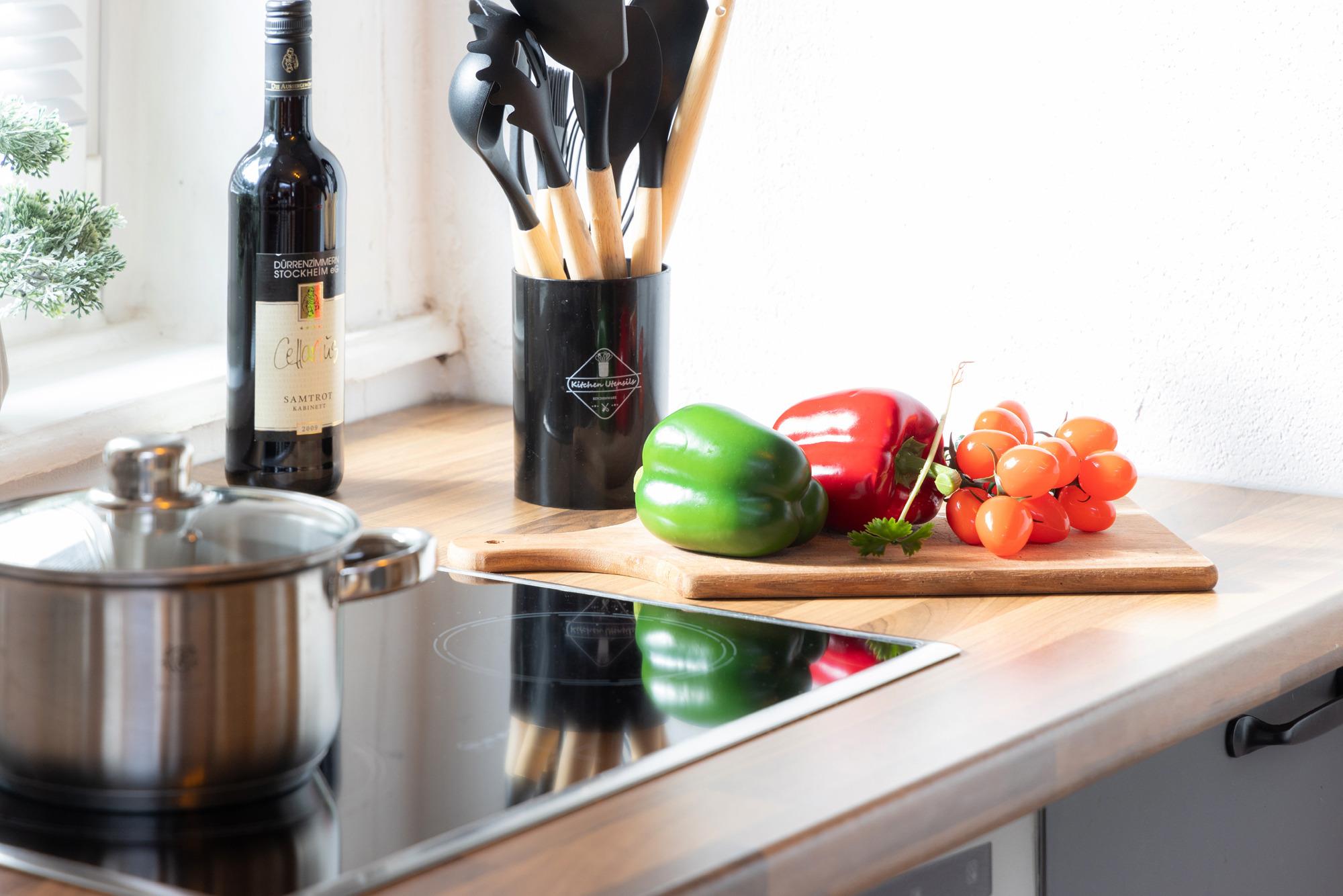 Für den perfekten Start in den Tag sorgen zwei moderne Bäder, jeweils mit Dusche und WC – praktisch und komfortabel, gerade bei mehreren Gästen. Die komplett ausgestattete Küche lädt zu gemeinsamen Kochabenden ein.