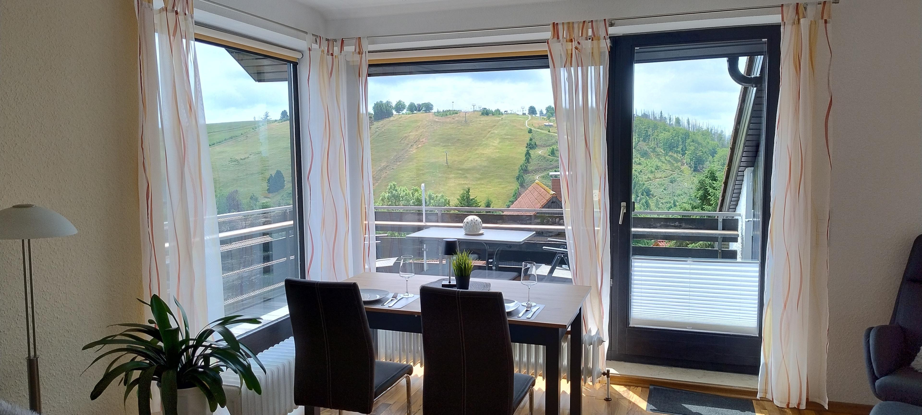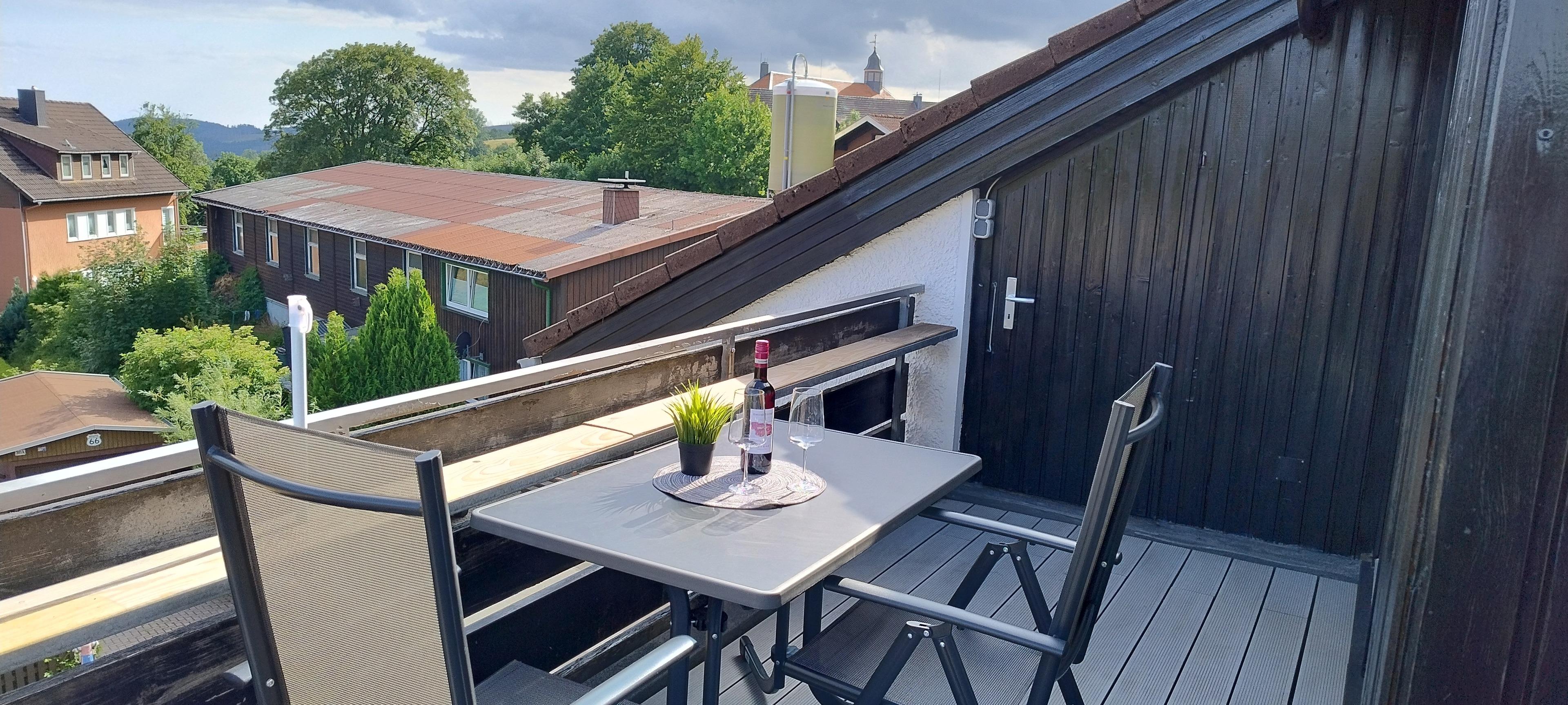 Neu sanierte Ferienwohnung (2025) mit Balkon und herrlichem Ausblick auf den Matthias-Schmidt-Berg mit seiner Sommerrodelbahn und Ski-Piste.