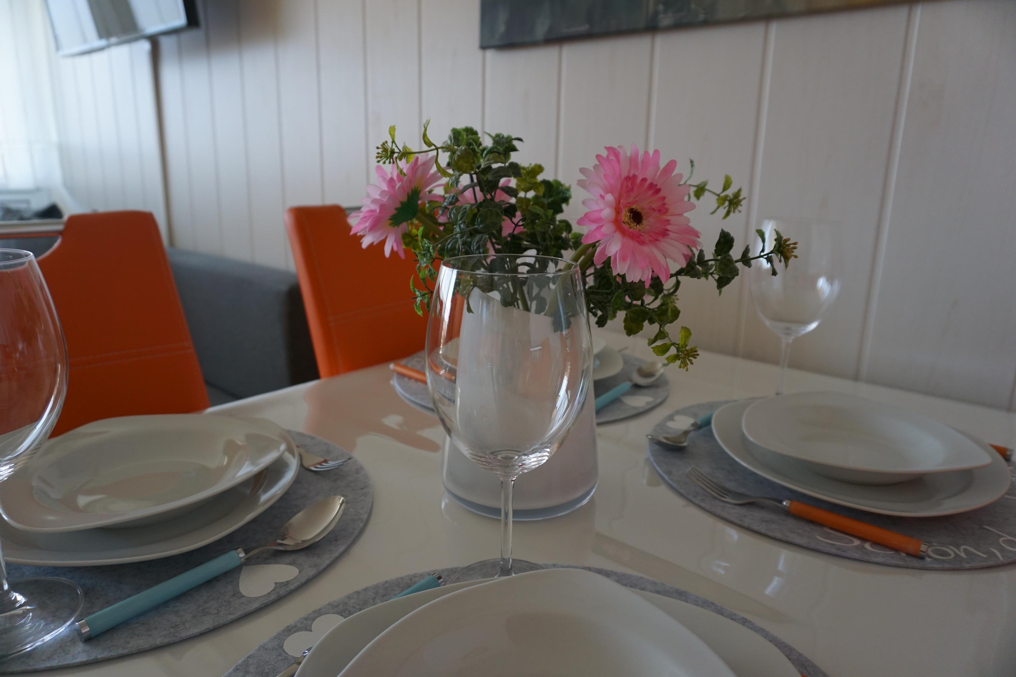 Der im Wohnbereich befindliche Esstisch mit vier gemütlichen Stühlen bietet ausreichend Platz für Ihre Verköstigung und dem gemütlichen Beisammensein.
