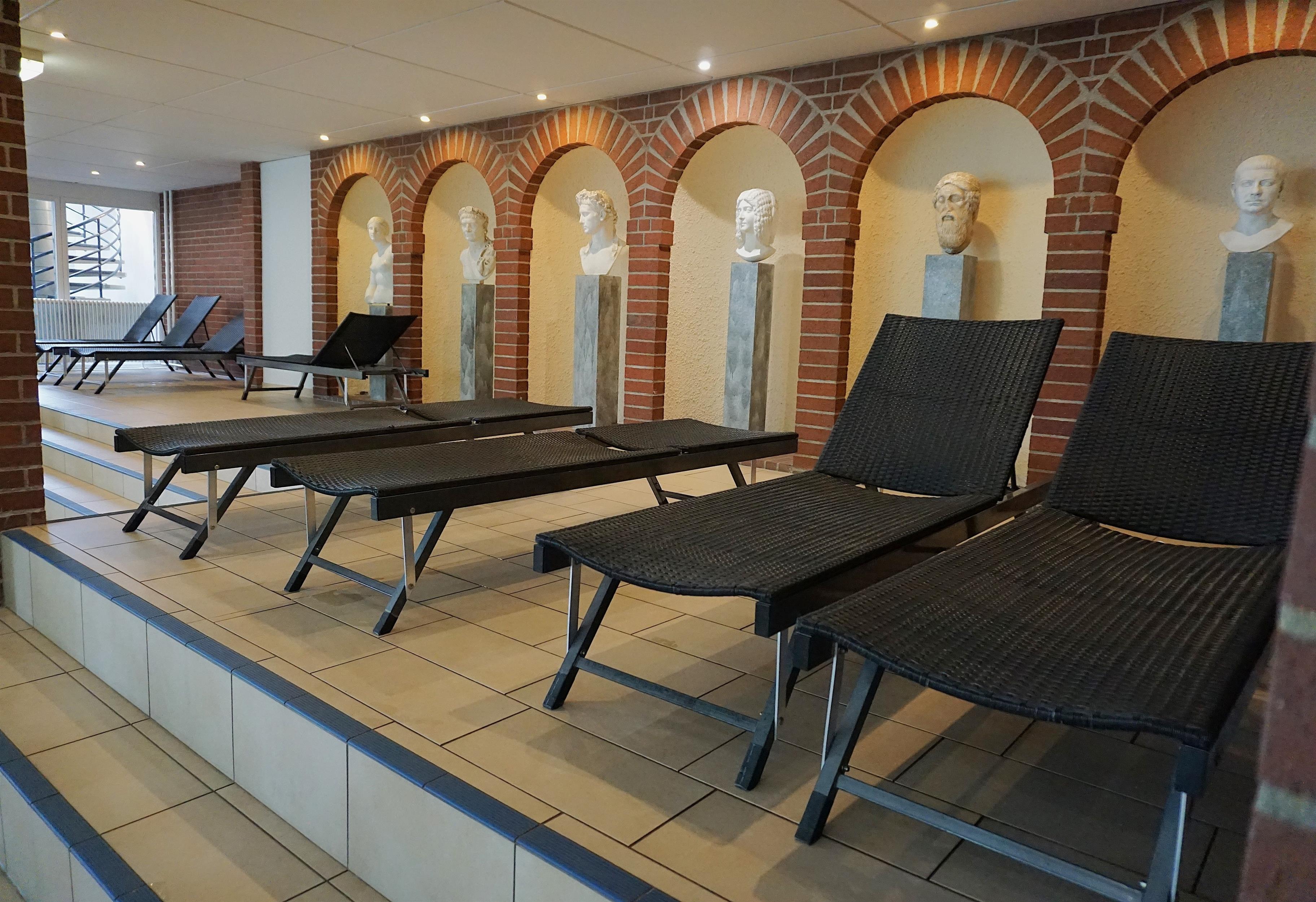 Die für Sie kostenloses "Römerlagune" (ca. 1.500 m² großer Wellnessbereich mit Hallenbad, Saunen, Wärmekabine, Fitnessraum und Tischtennis) befinden sich im gleichen Haus und sind bequem mit dem Fahrstuhl erreichbar.